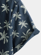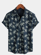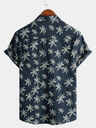 Camisa hawaiana de manga corta con botones y estampado de palmeras de algodón azul marino para hombre