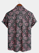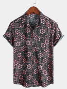 Camisa hawaiana de manga corta con bolsillo floral rosa para hombre