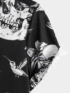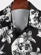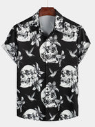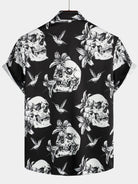 Camisa hawaiana de manga corta con calavera punk rock negra para hombre
