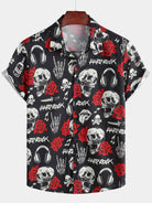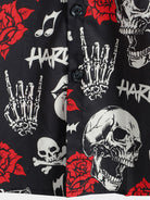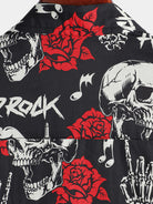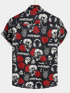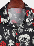 Camisa hawaiana de manga corta con estampado floral de calavera y rosa para hombre estilo punk rockero y rockero