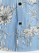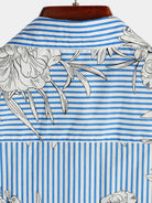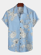 Camisa hawaiana de manga corta con estampado de rayas y flores con bolsillo para hombres