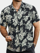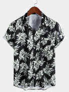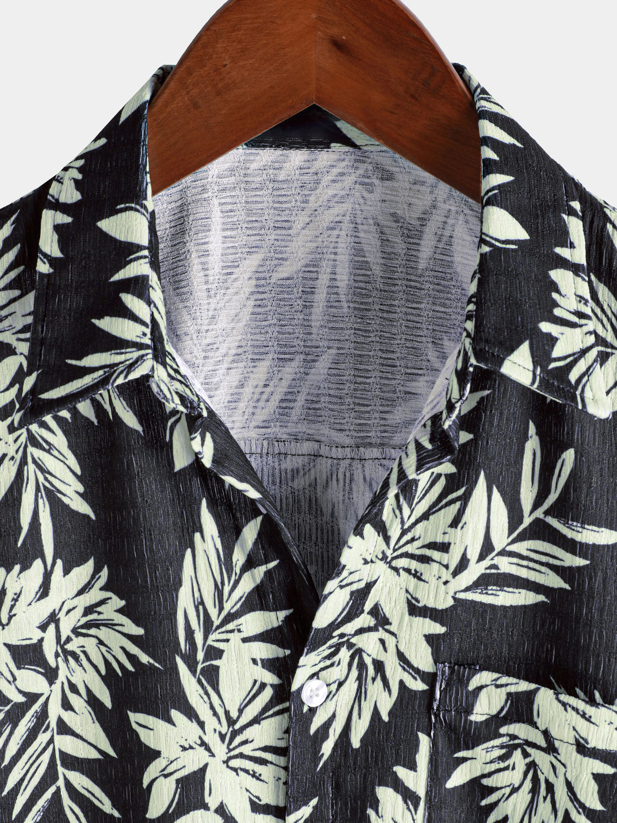 Camisa hawaiana de manga corta con estampado de hojas de verano para hombre