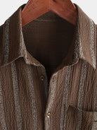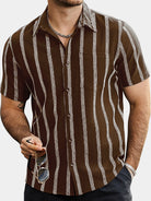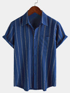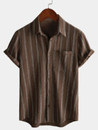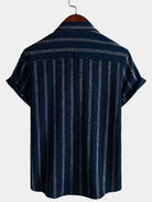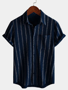 Camisa hawaiana de manga corta con botones y bolsillo a rayas de verano para hombre