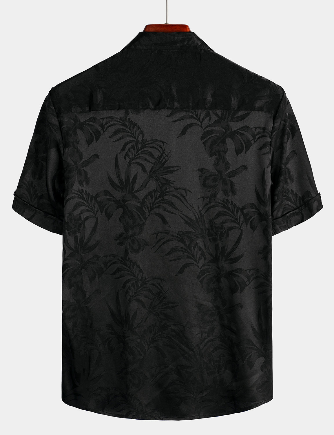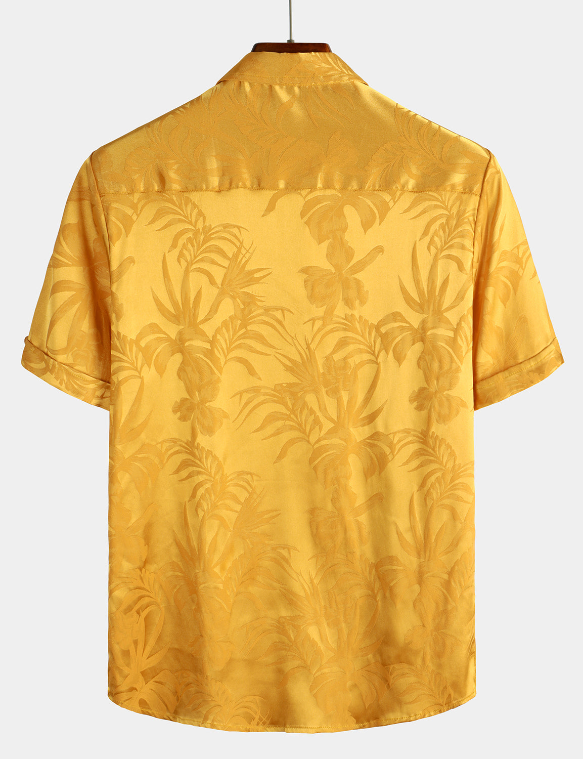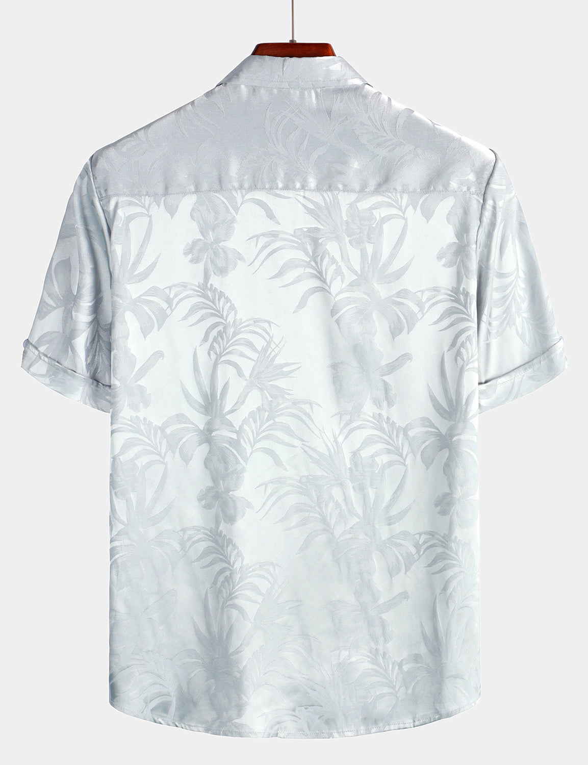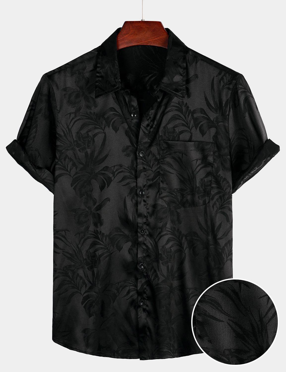 Camisa de manga corta de satén de seda jacquard con estampado floral para hombre
