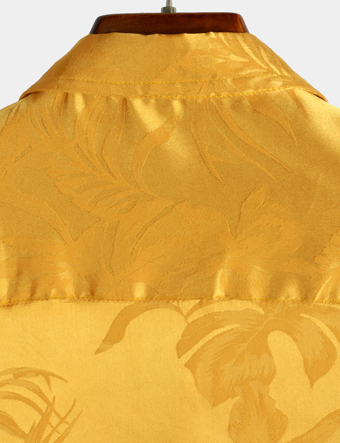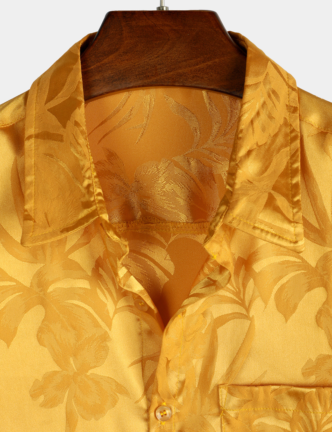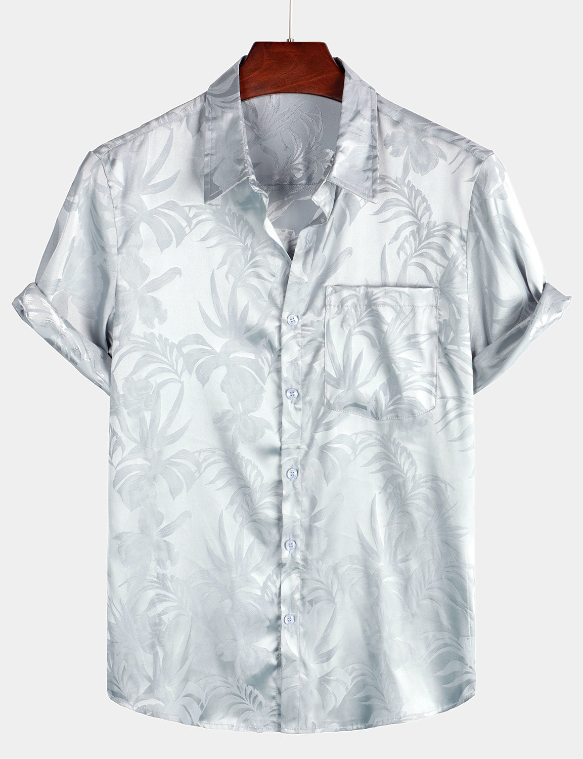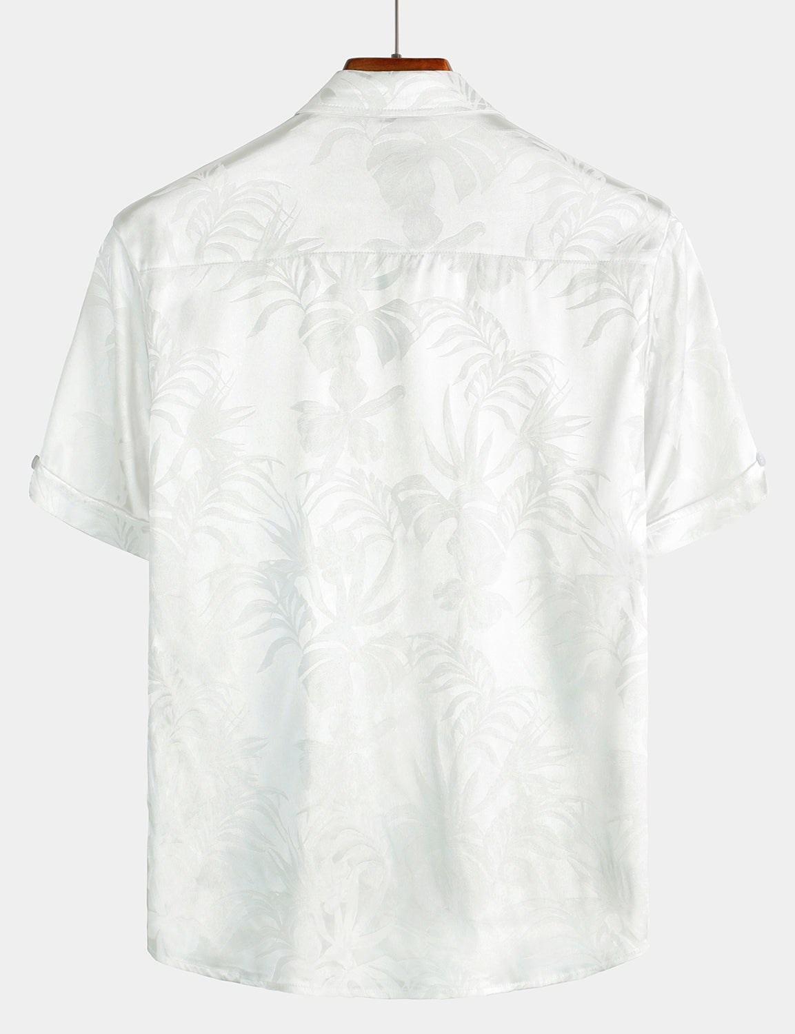 Camisa de manga corta de satén de seda jacquard con estampado floral para hombre