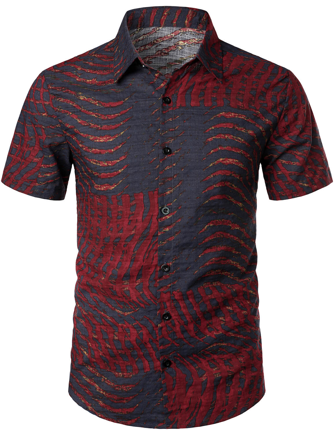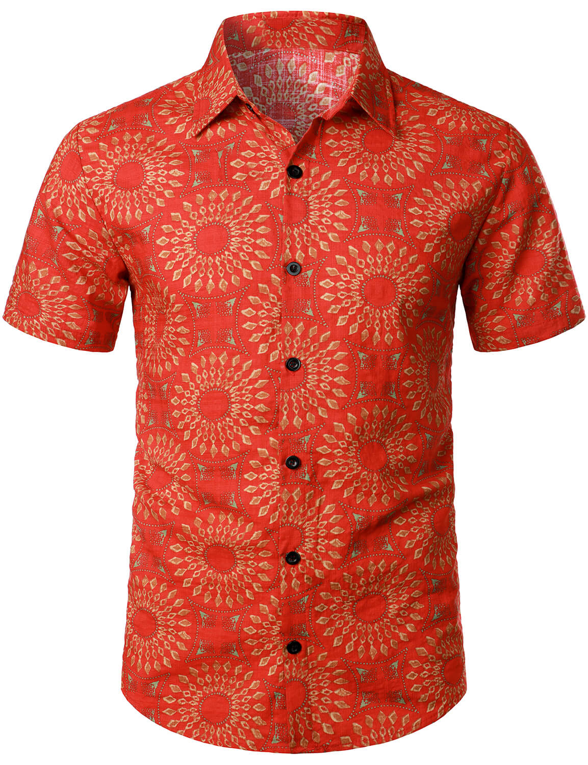 Camisa casual de verano de manga corta con estampado floral rojo para hombre