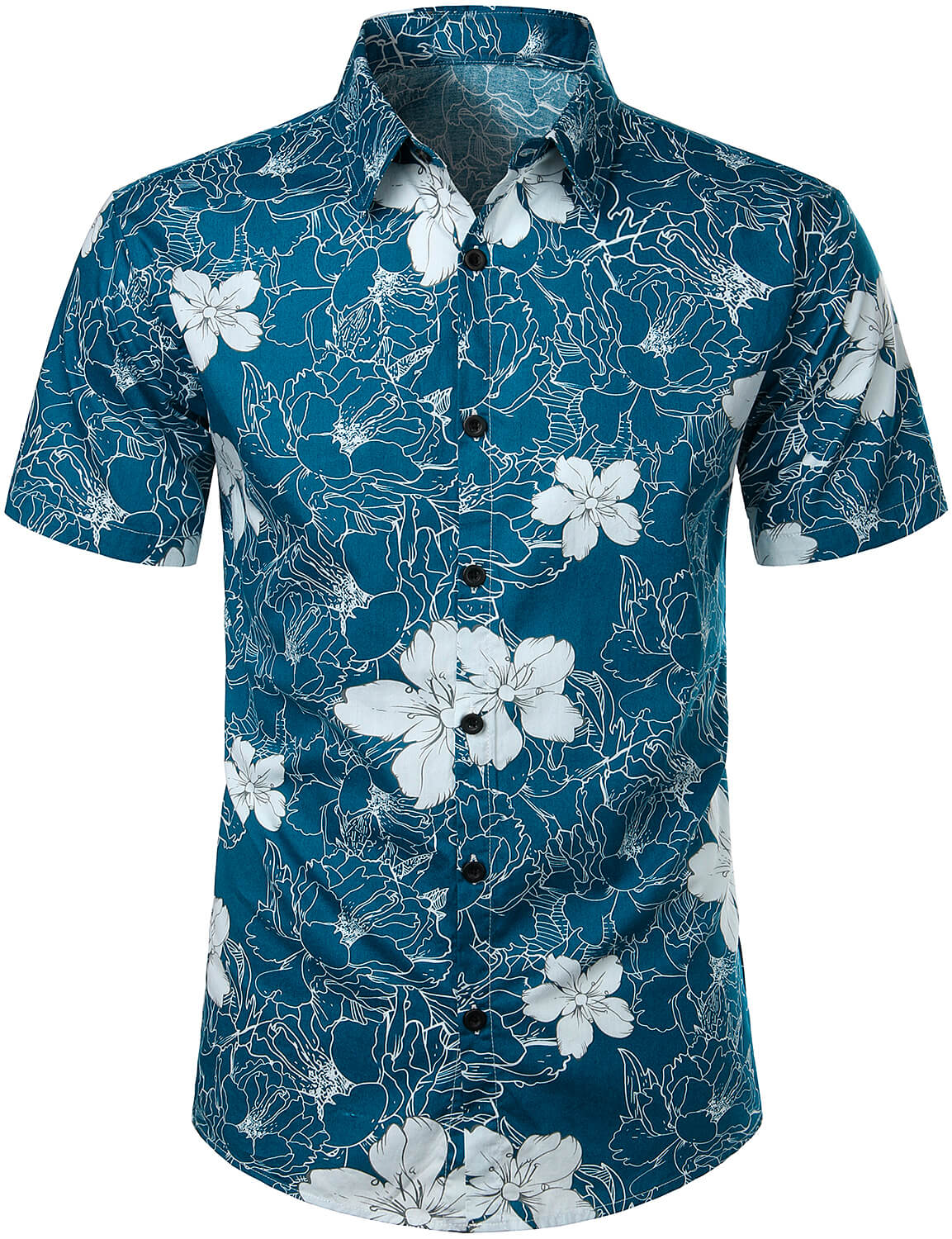 Camisa de playa informal de algodón de manga corta con estampado floral para hombre
