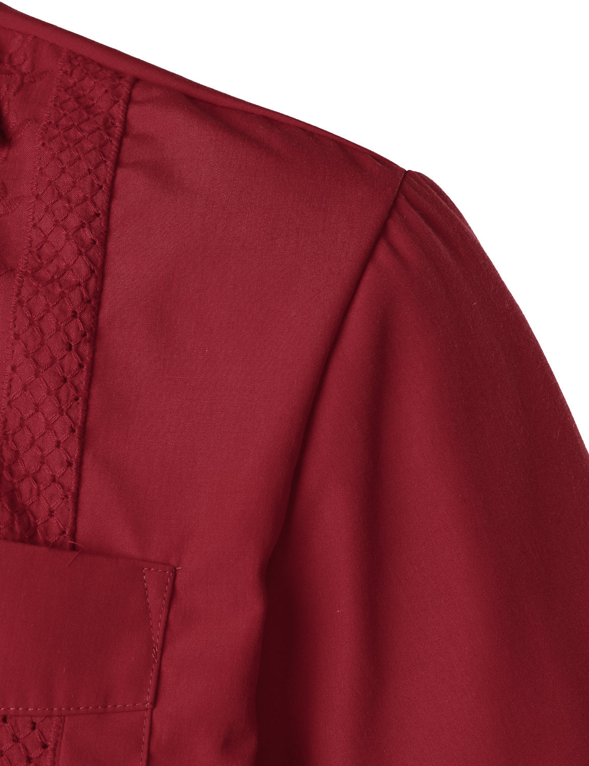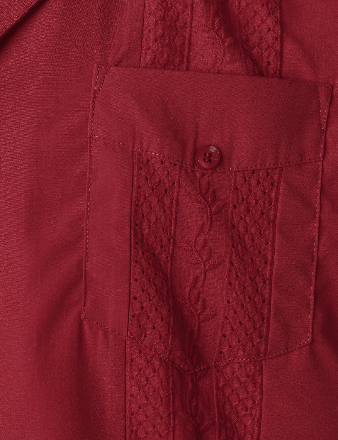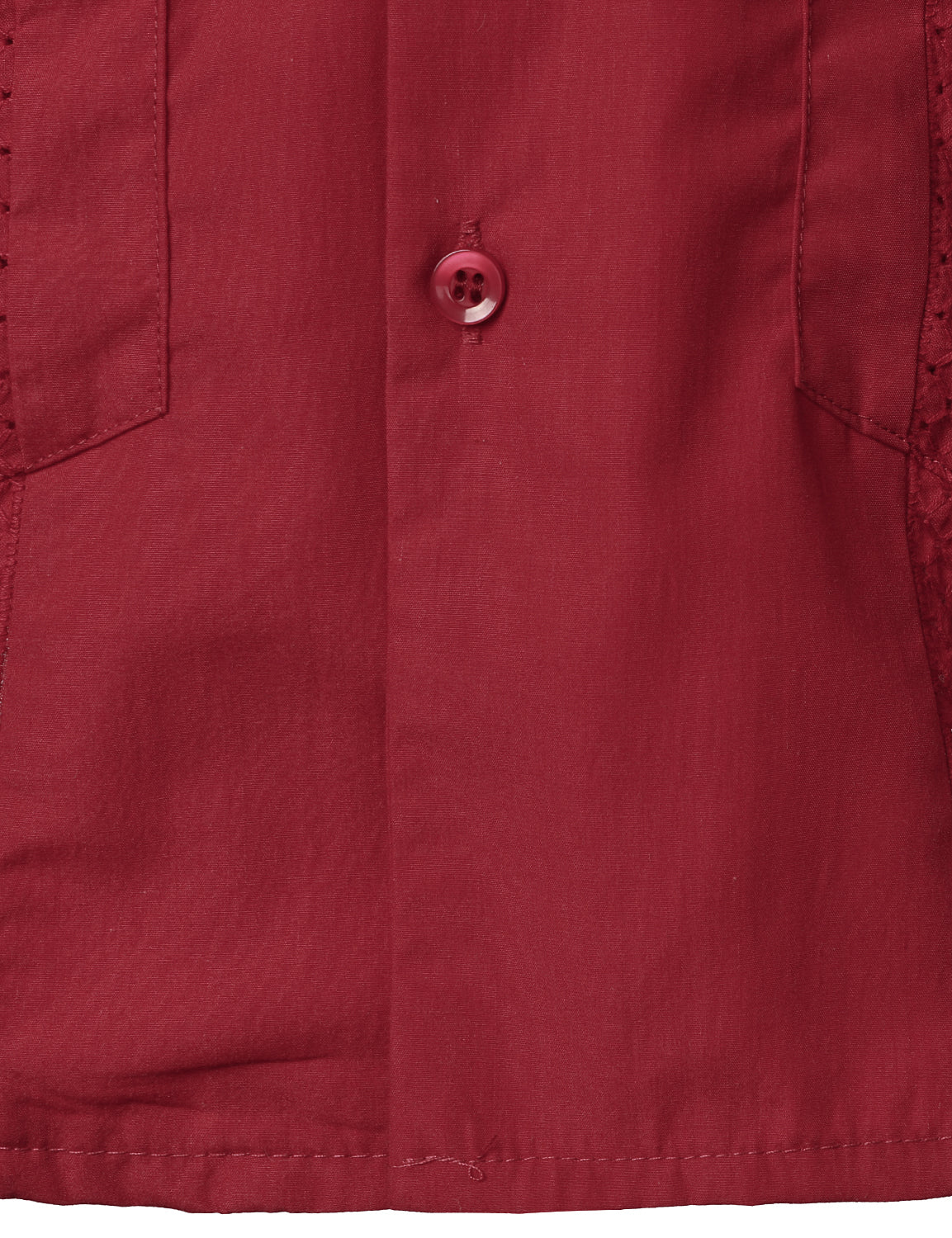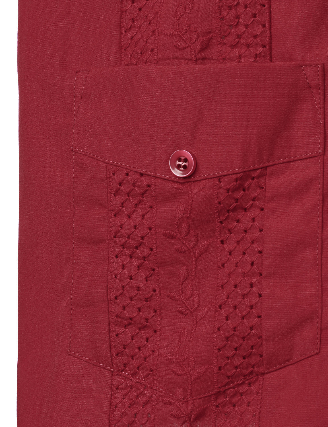 Camisa guayabera cubana roja de manga corta con bolsillo para hombre