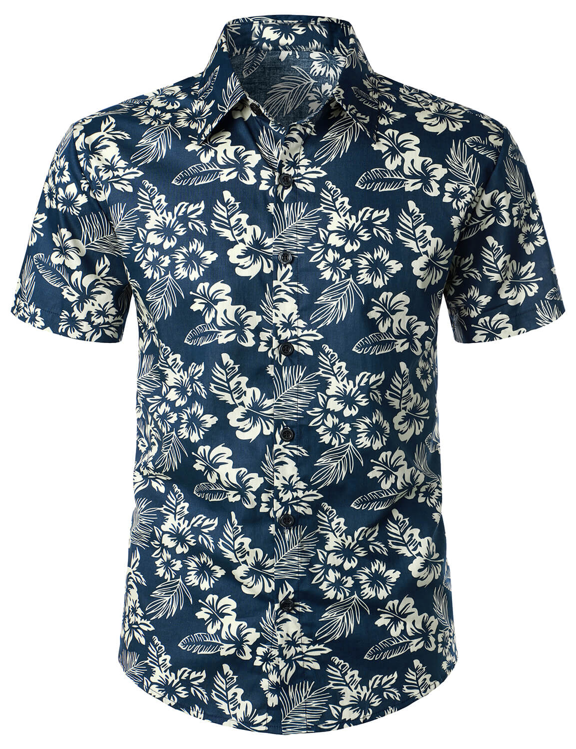 Camisa de verano de manga corta con estampado floral azul marino para hombre