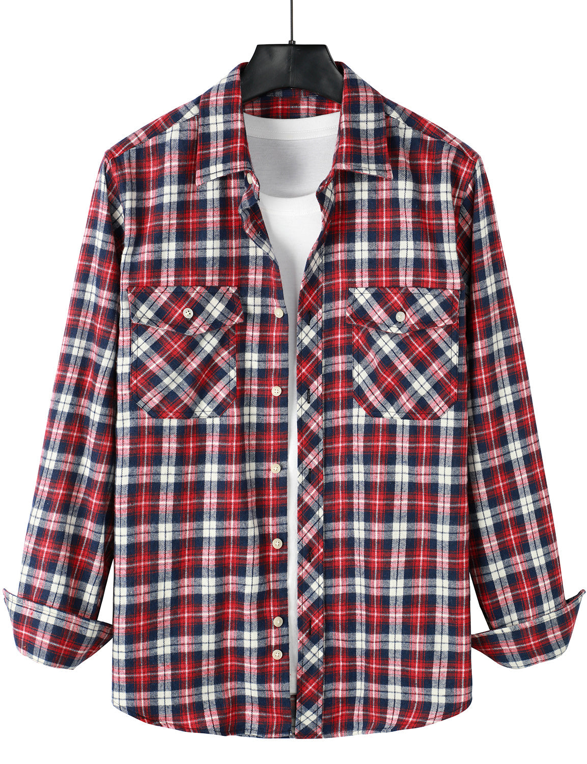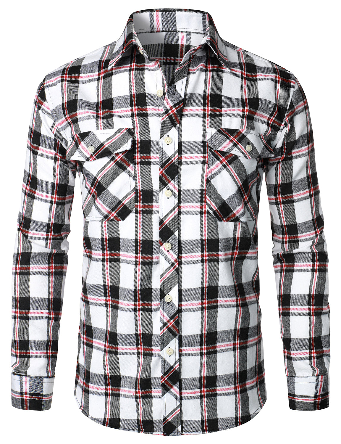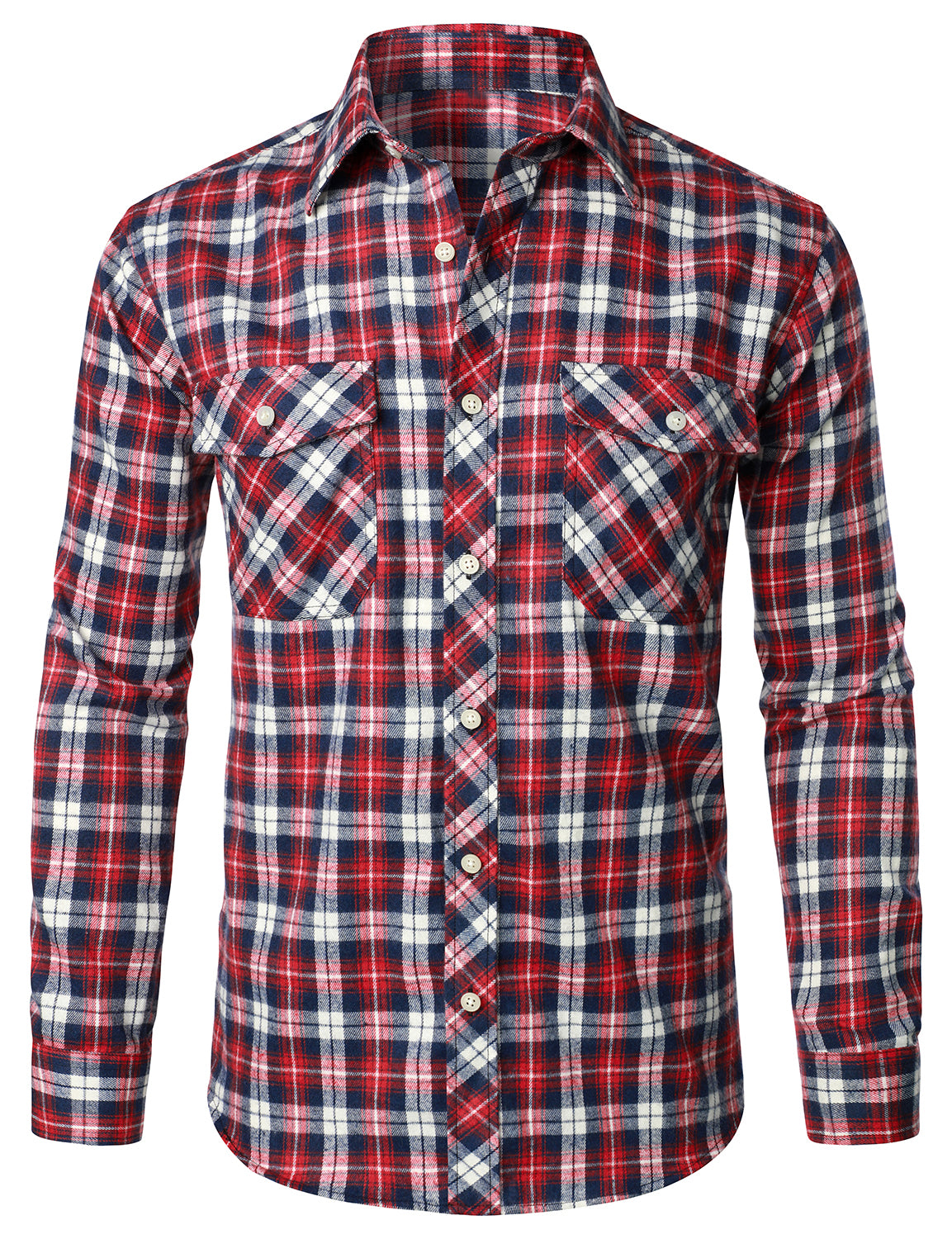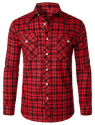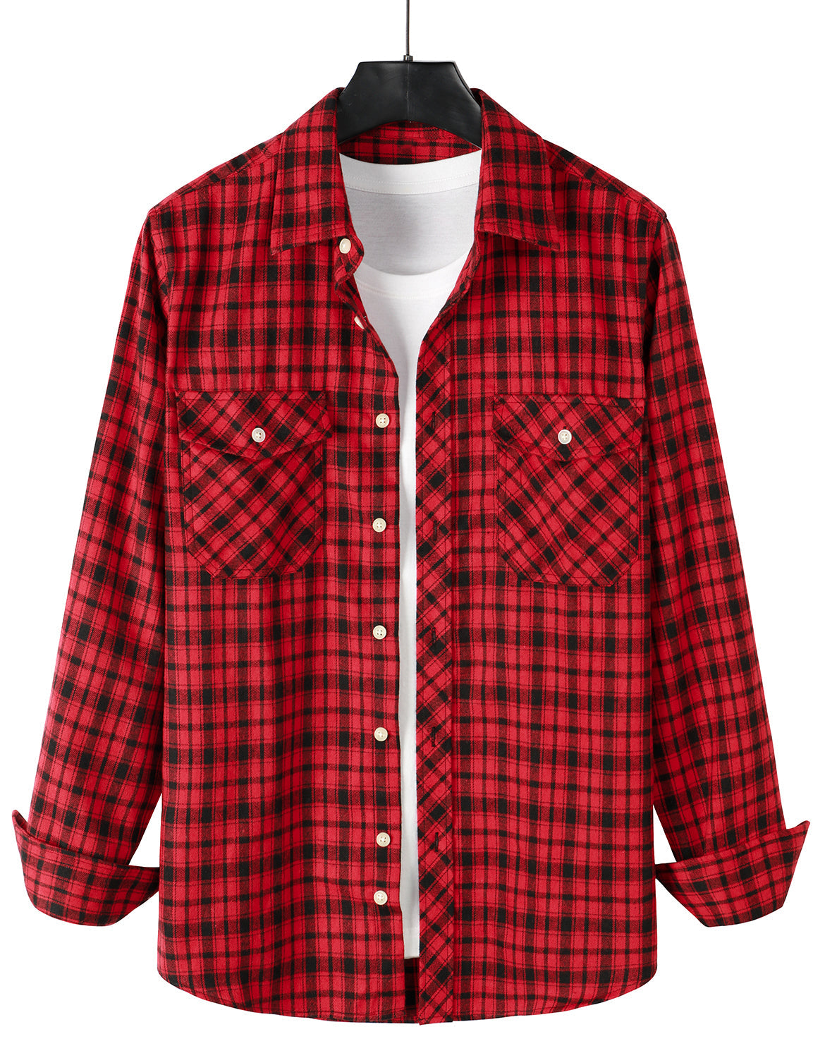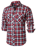 Men's Plaid Double Pocket Button Up Lapel Long Sleeve Flannel Shirt