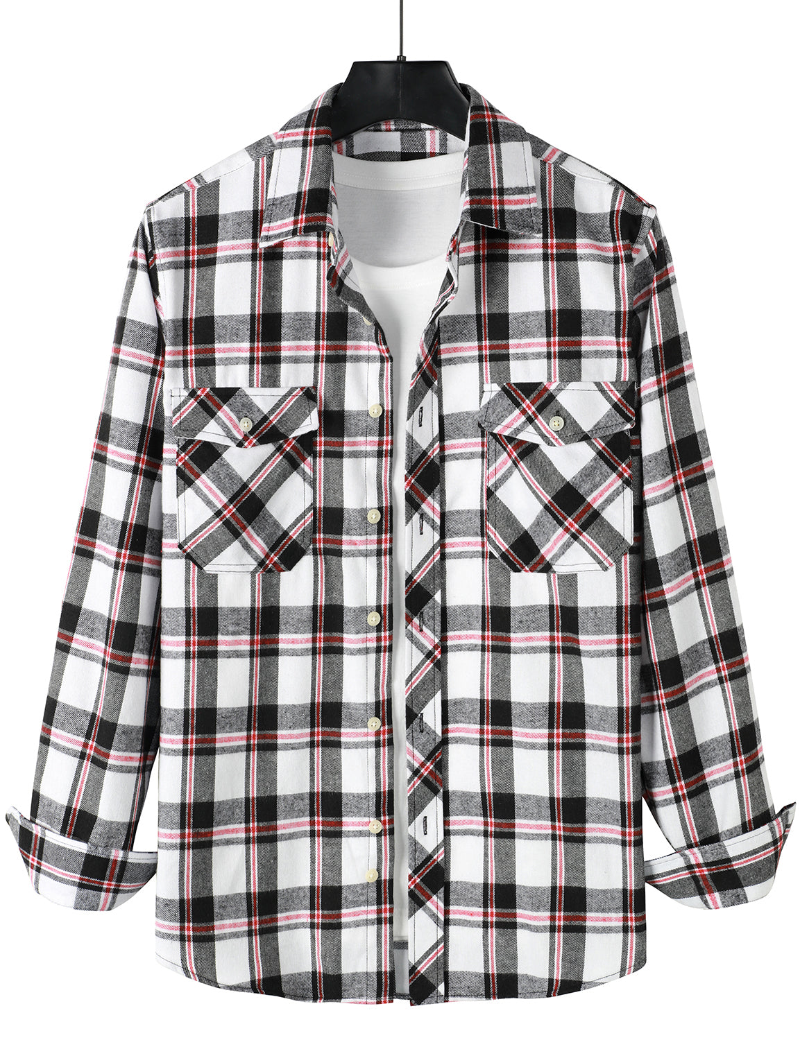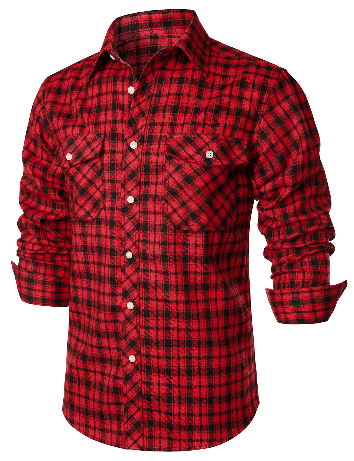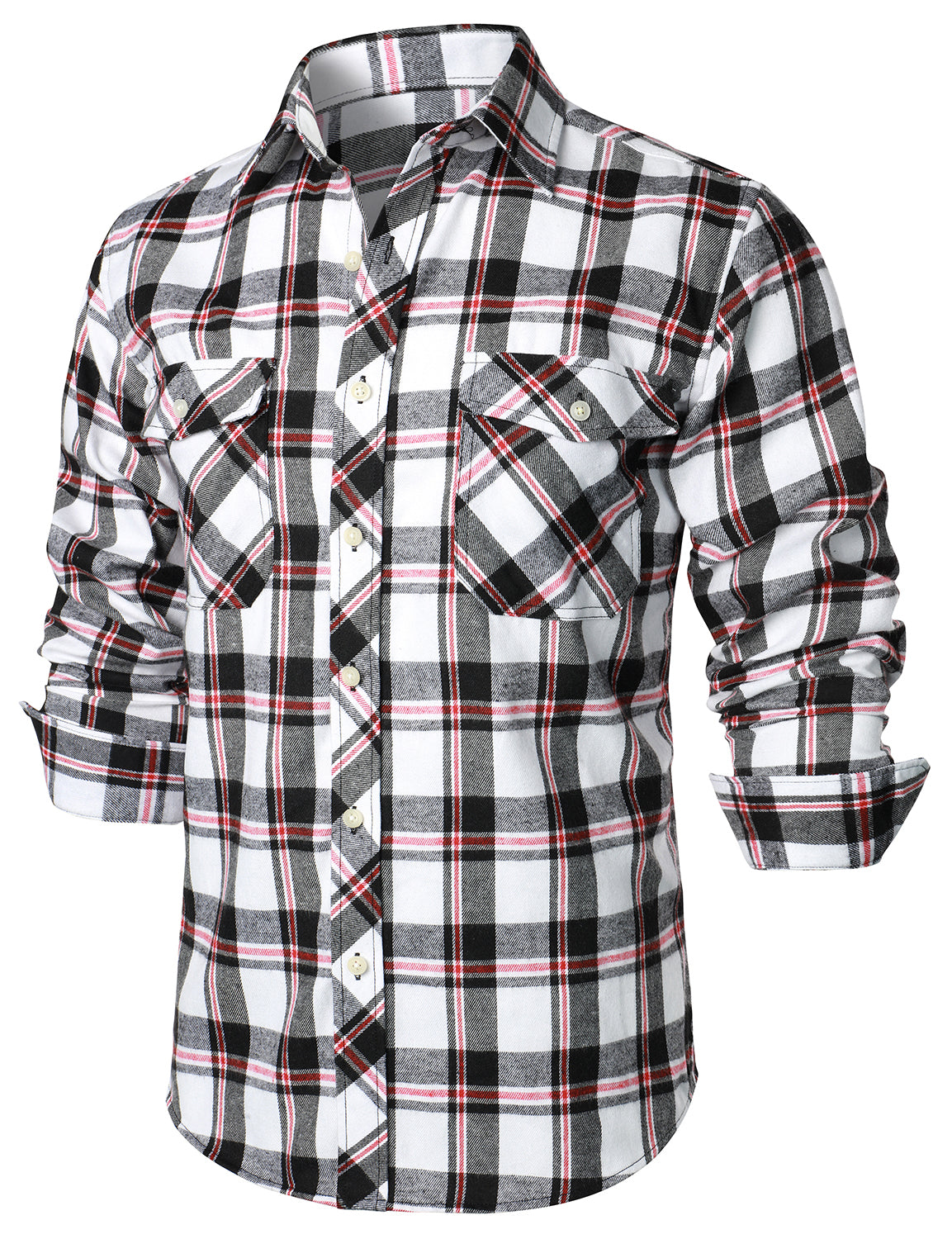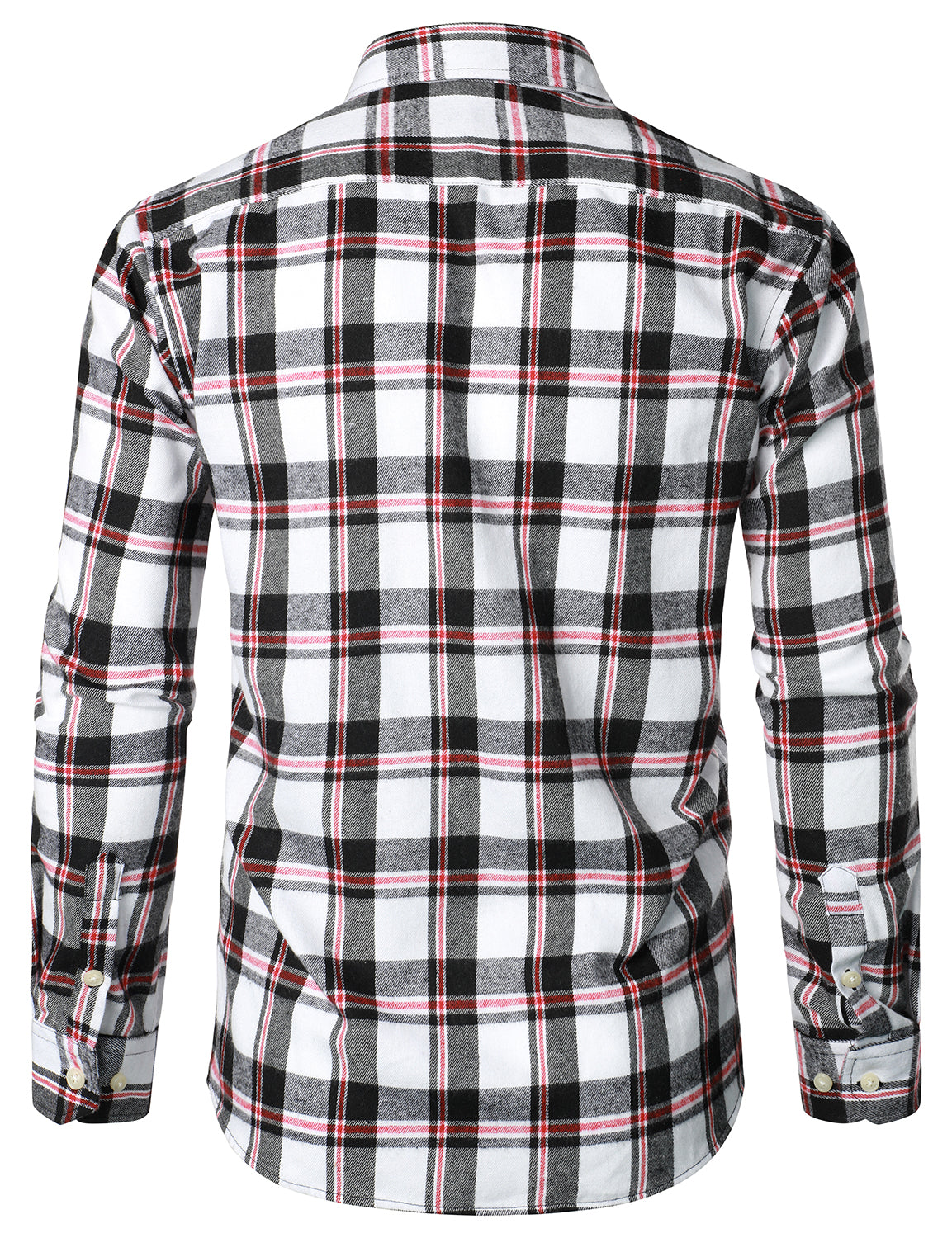 Men's Plaid Double Pocket Button Up Lapel Long Sleeve Flannel Shirt