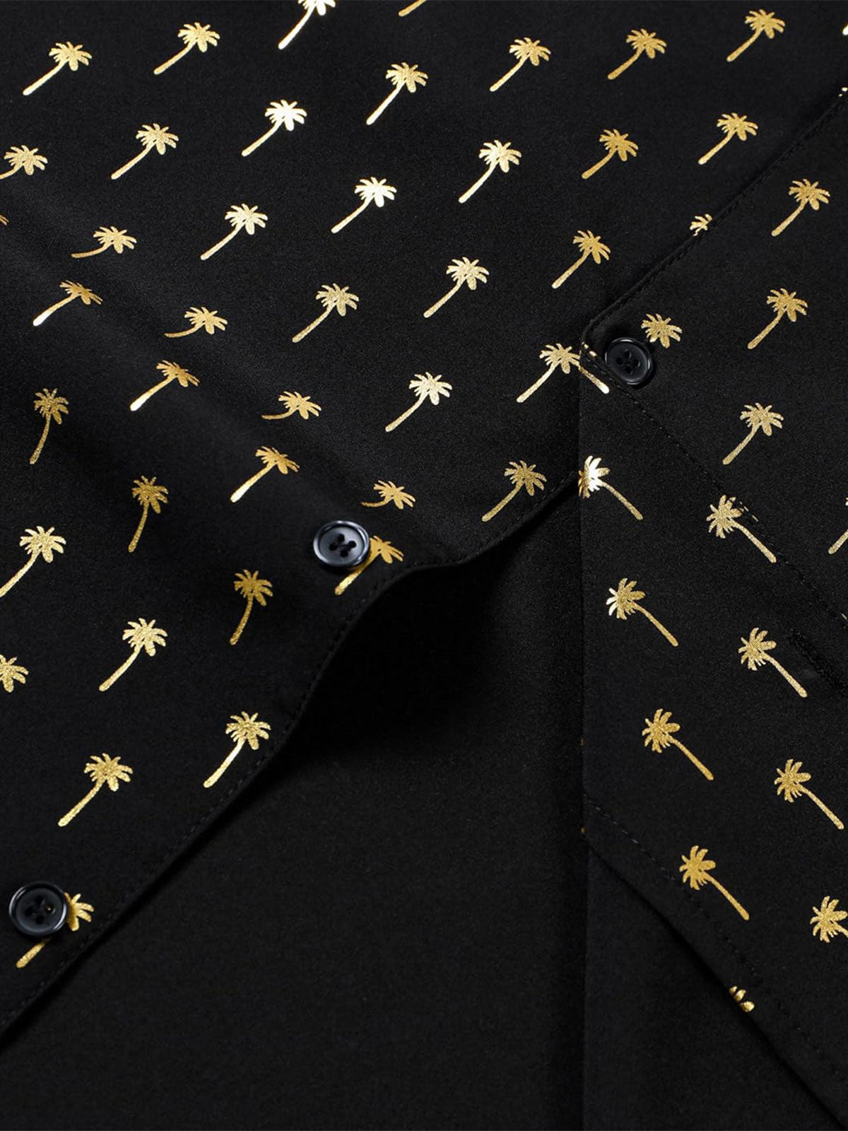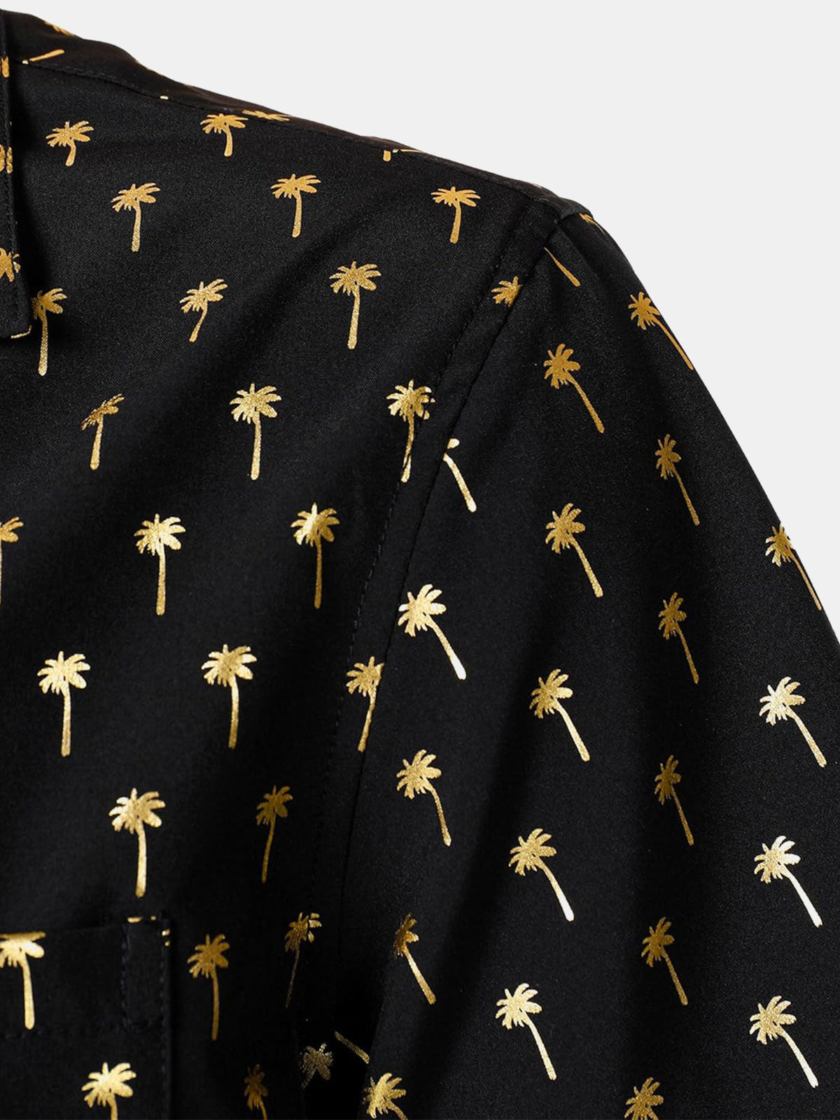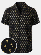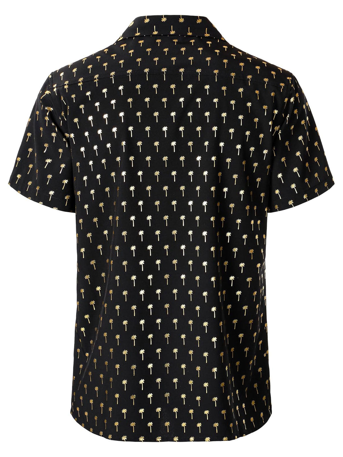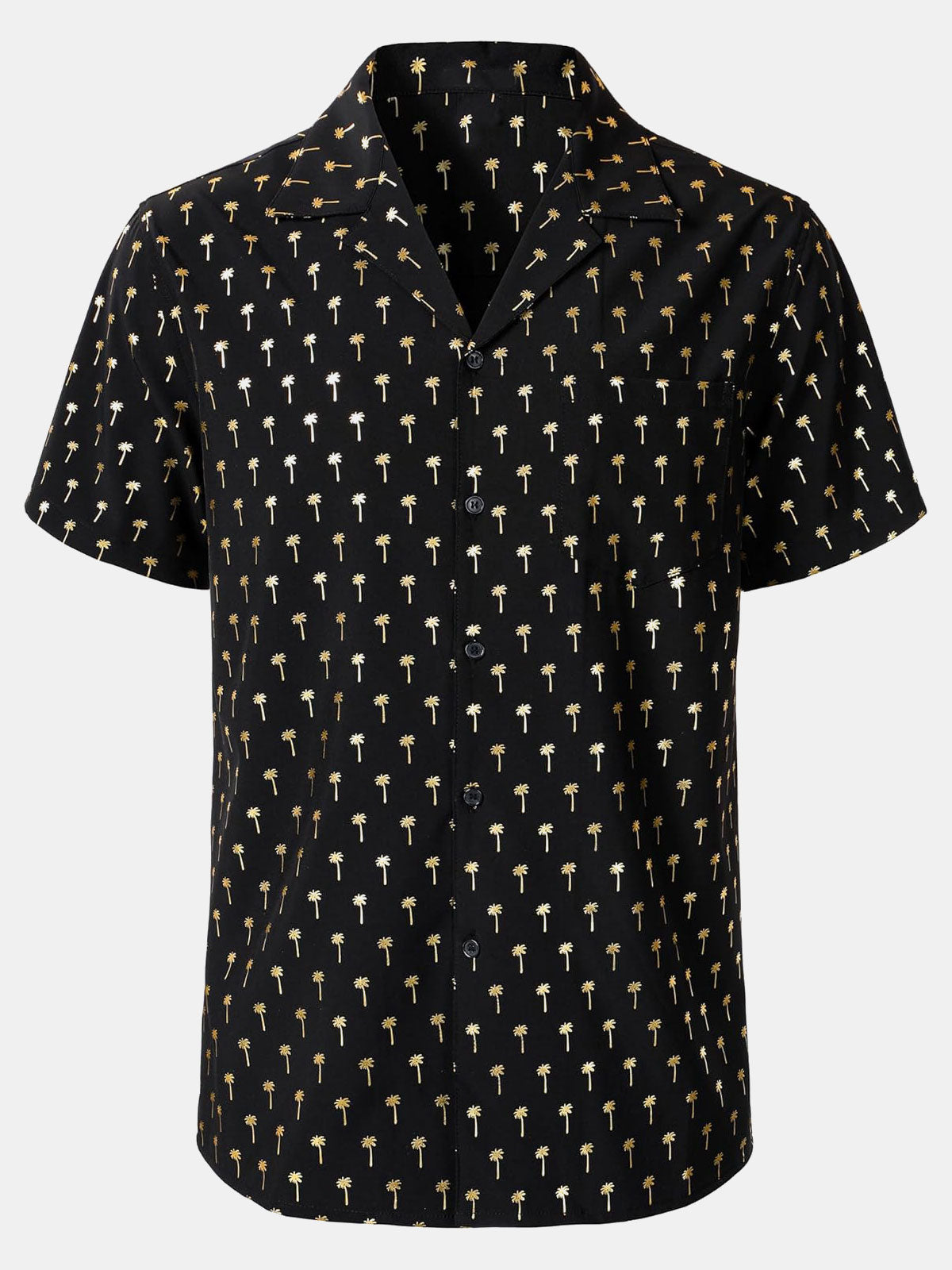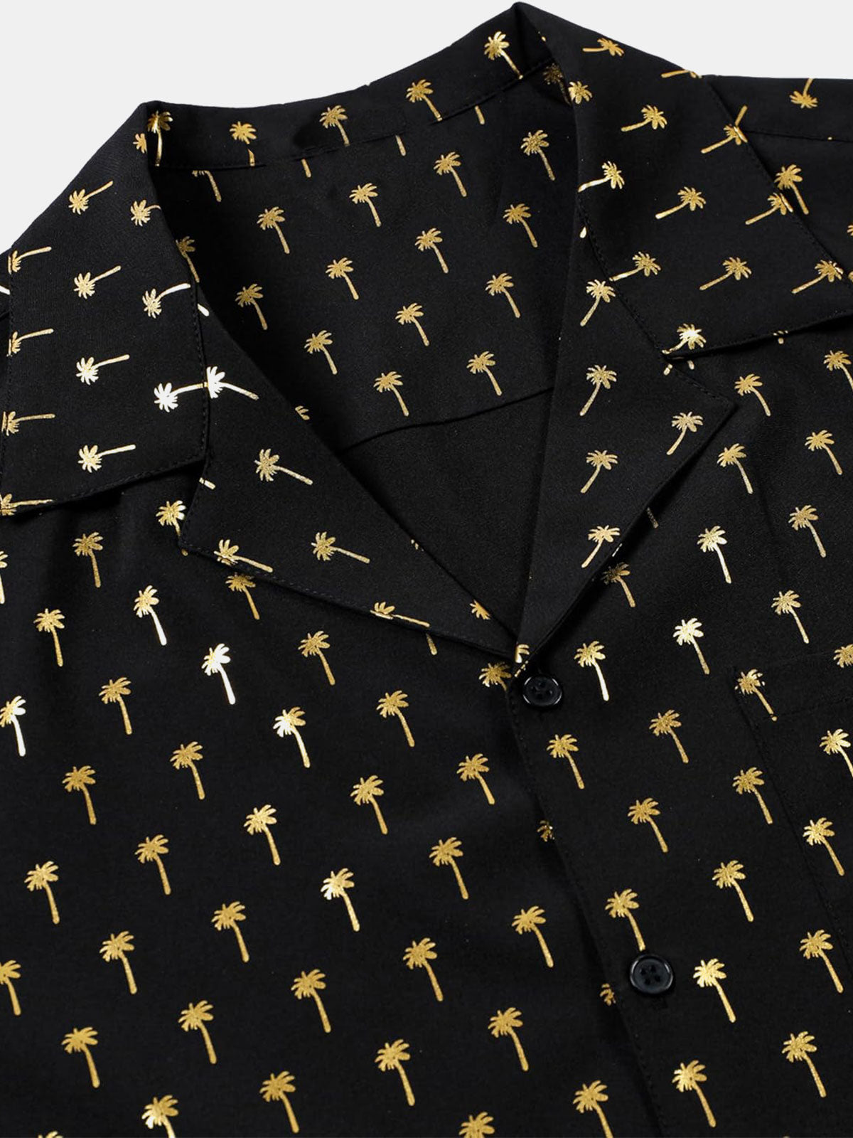 Camisa de manga corta con cuello cubano y palmera dorada para hombre