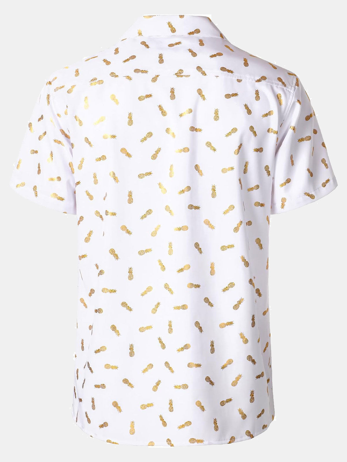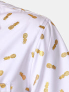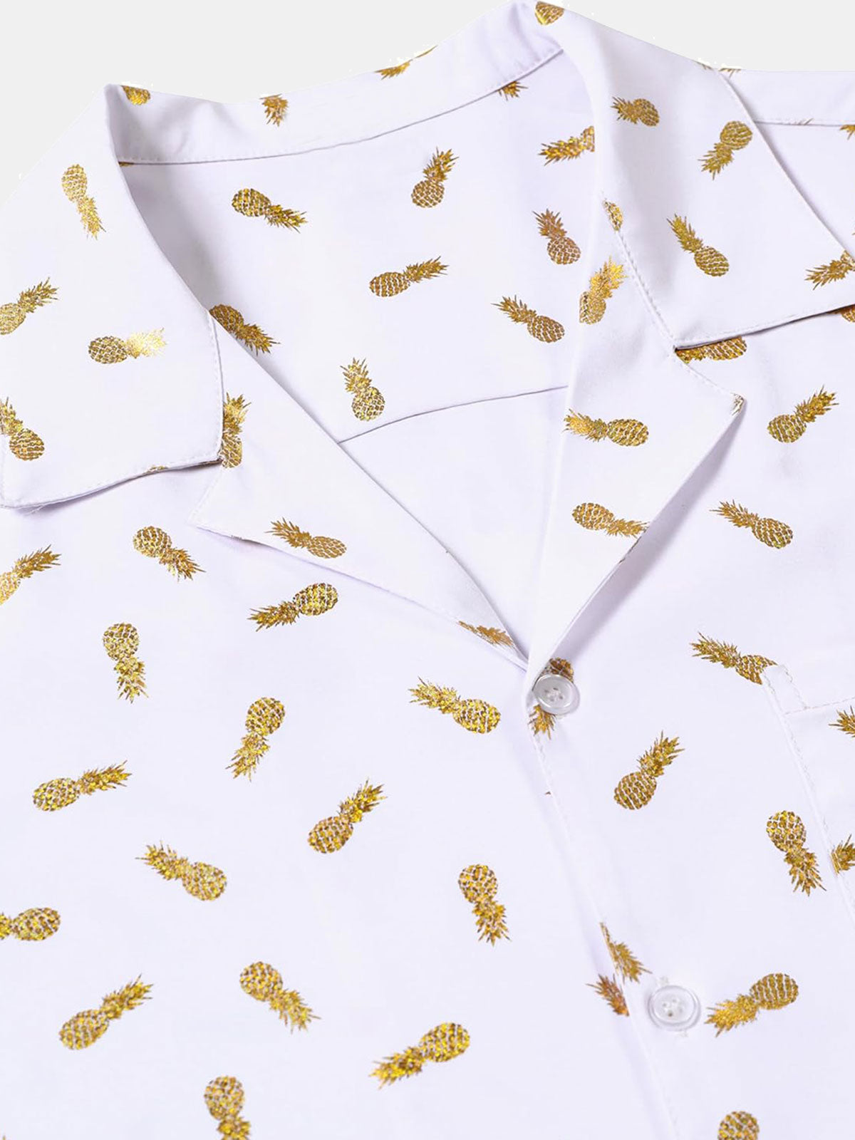 Camisa de manga corta con cuello cubano y estampado de piña para hombre