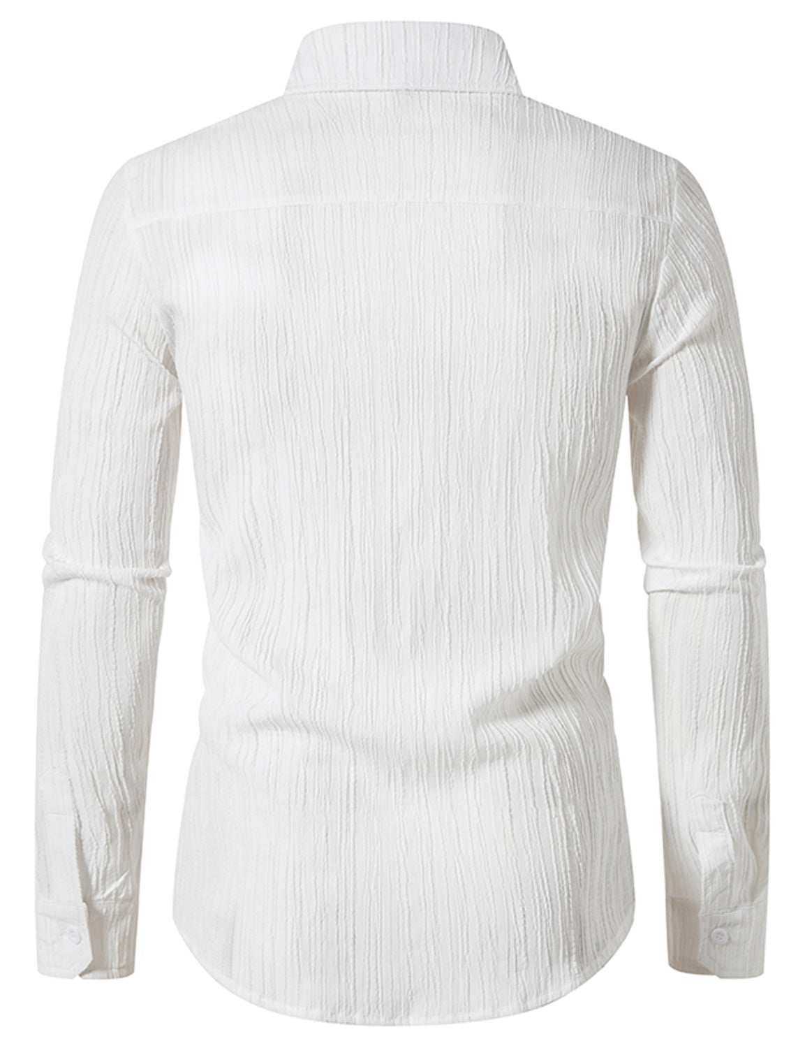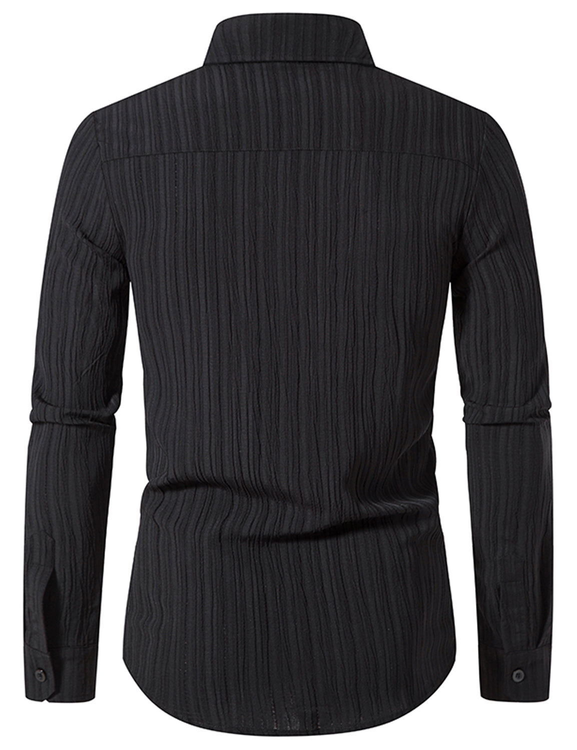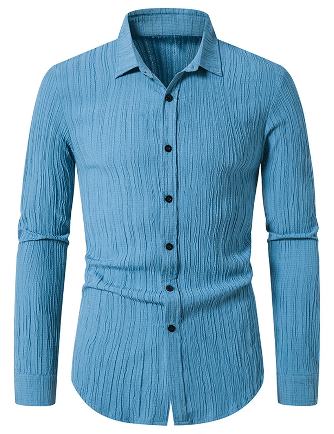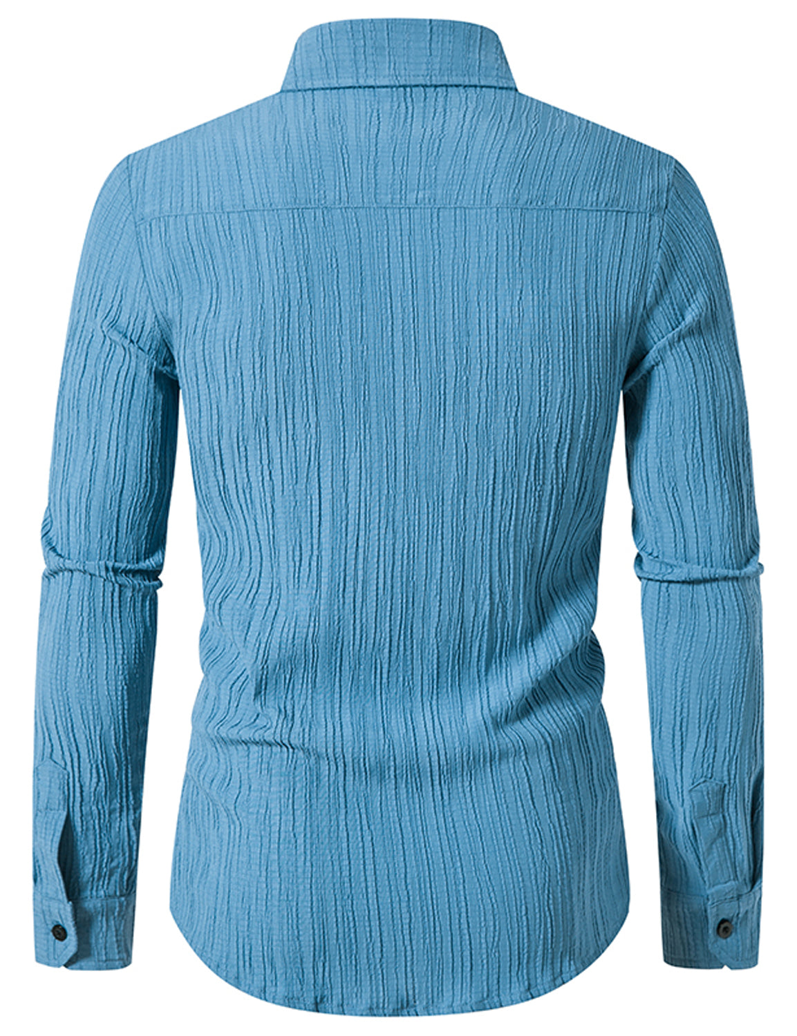 Men's Cotton Breathable Solid Color Casual Button Up Lapel Long Sleeve Shirt