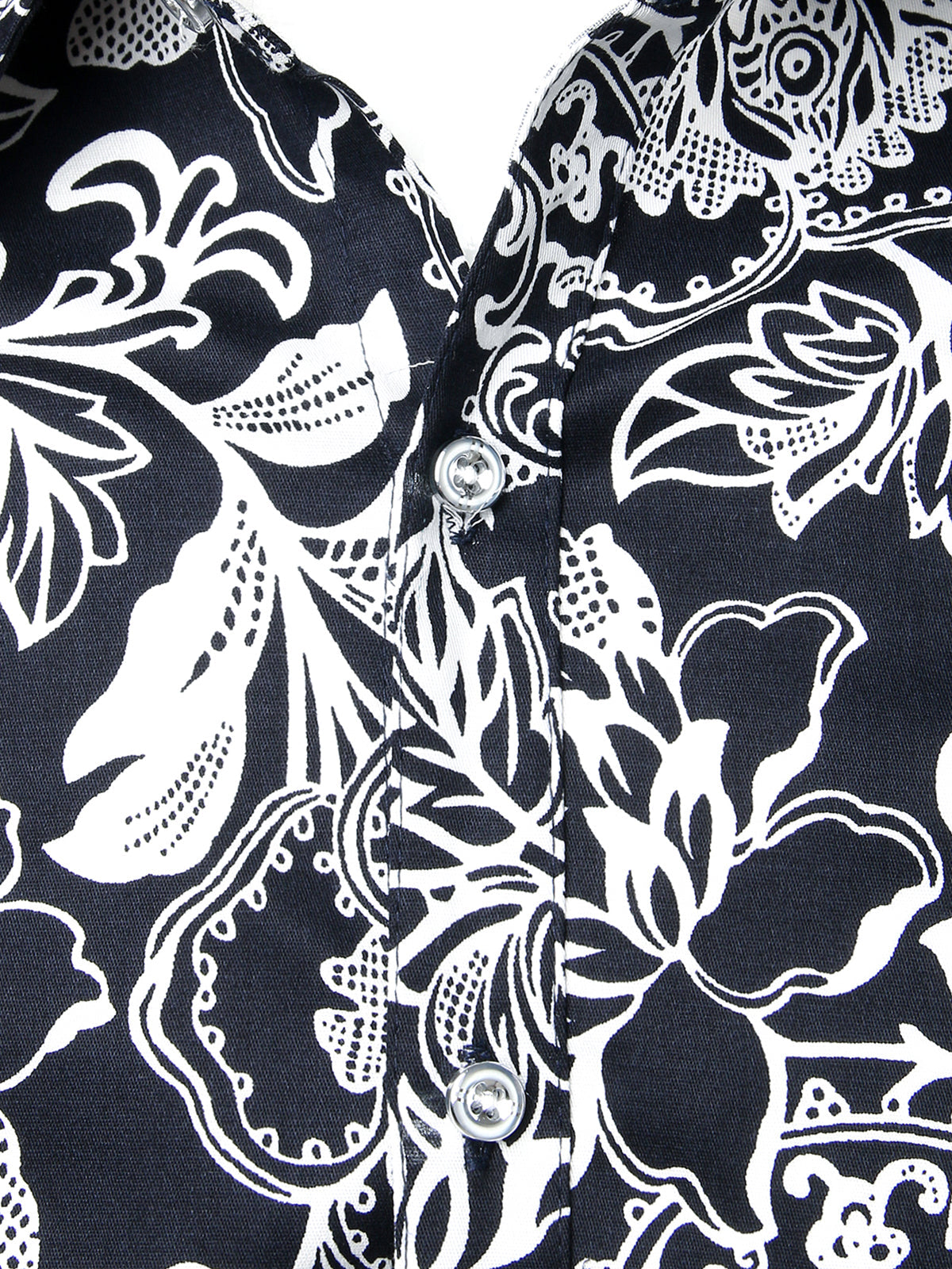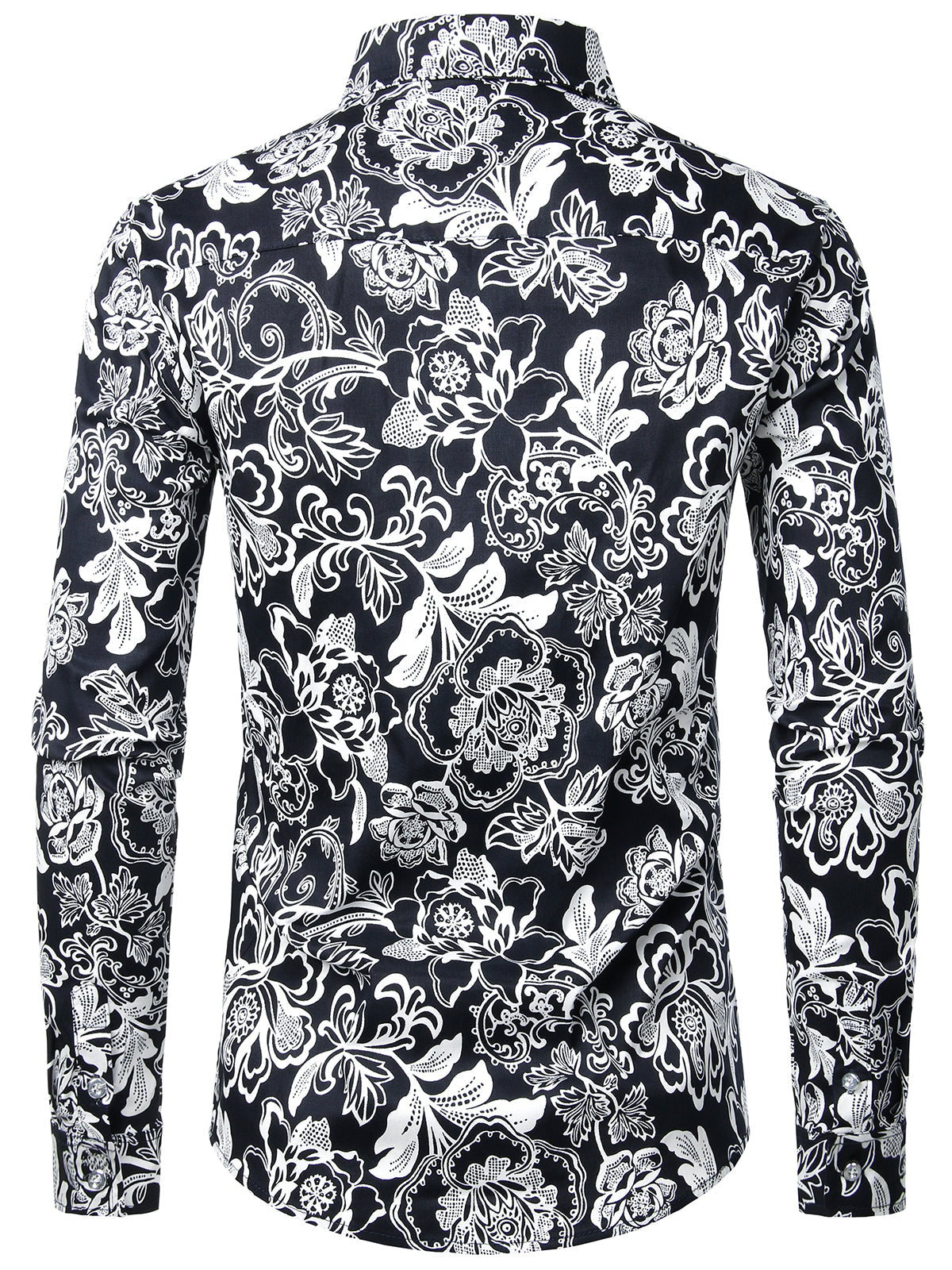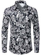 Men's Floral Cotton Casual Button Down Long Sleeve Shirt