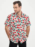 Camisa de verano de algodón con mangas cortas en color beige para hombre