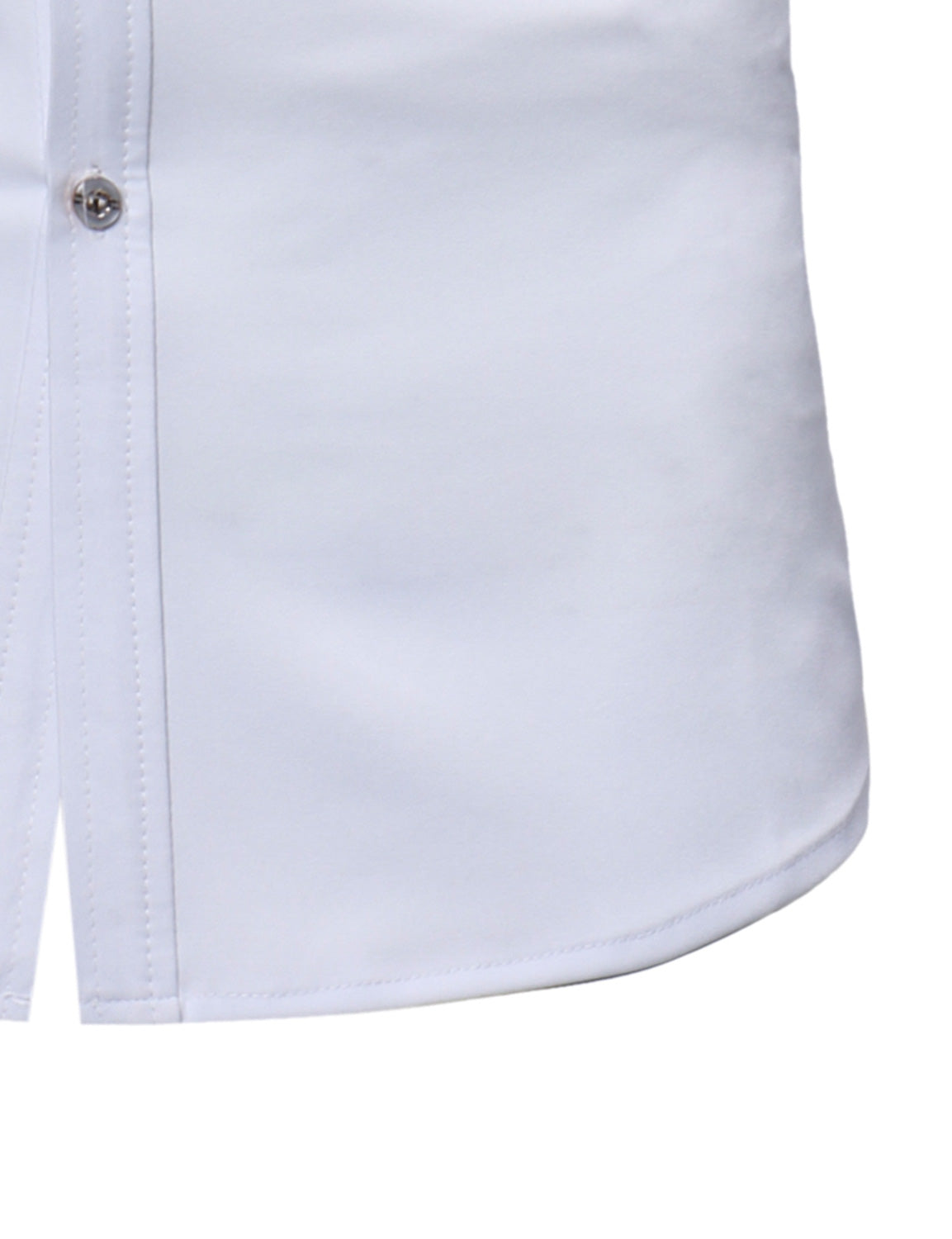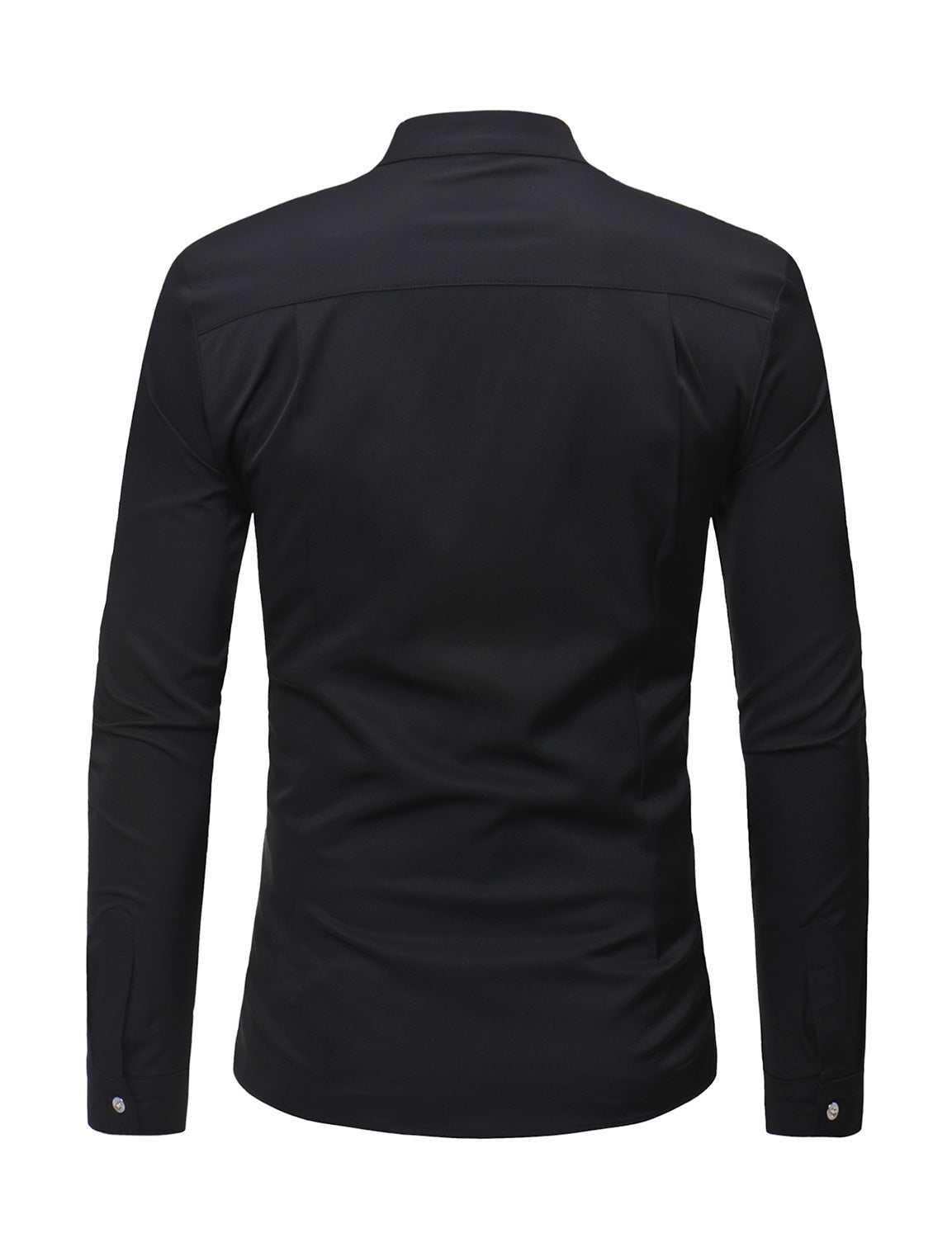 Men's Stand Collar Lace Solid Color Long Sleeve Tuxedo Dress Shirt