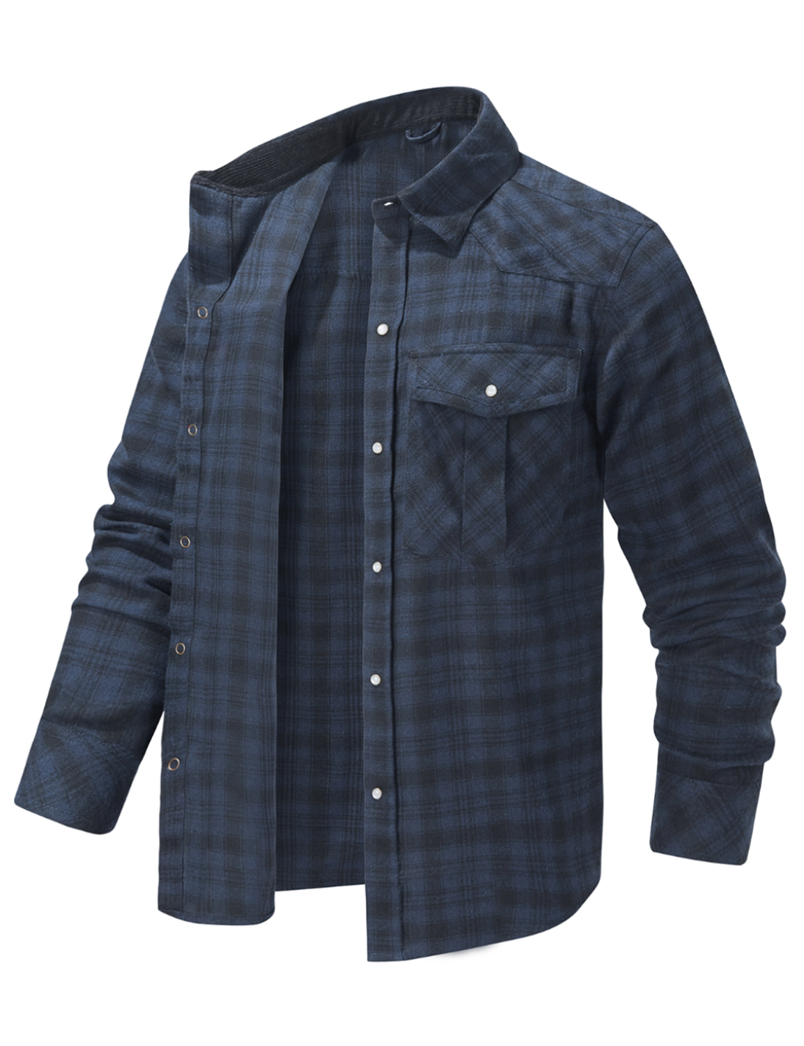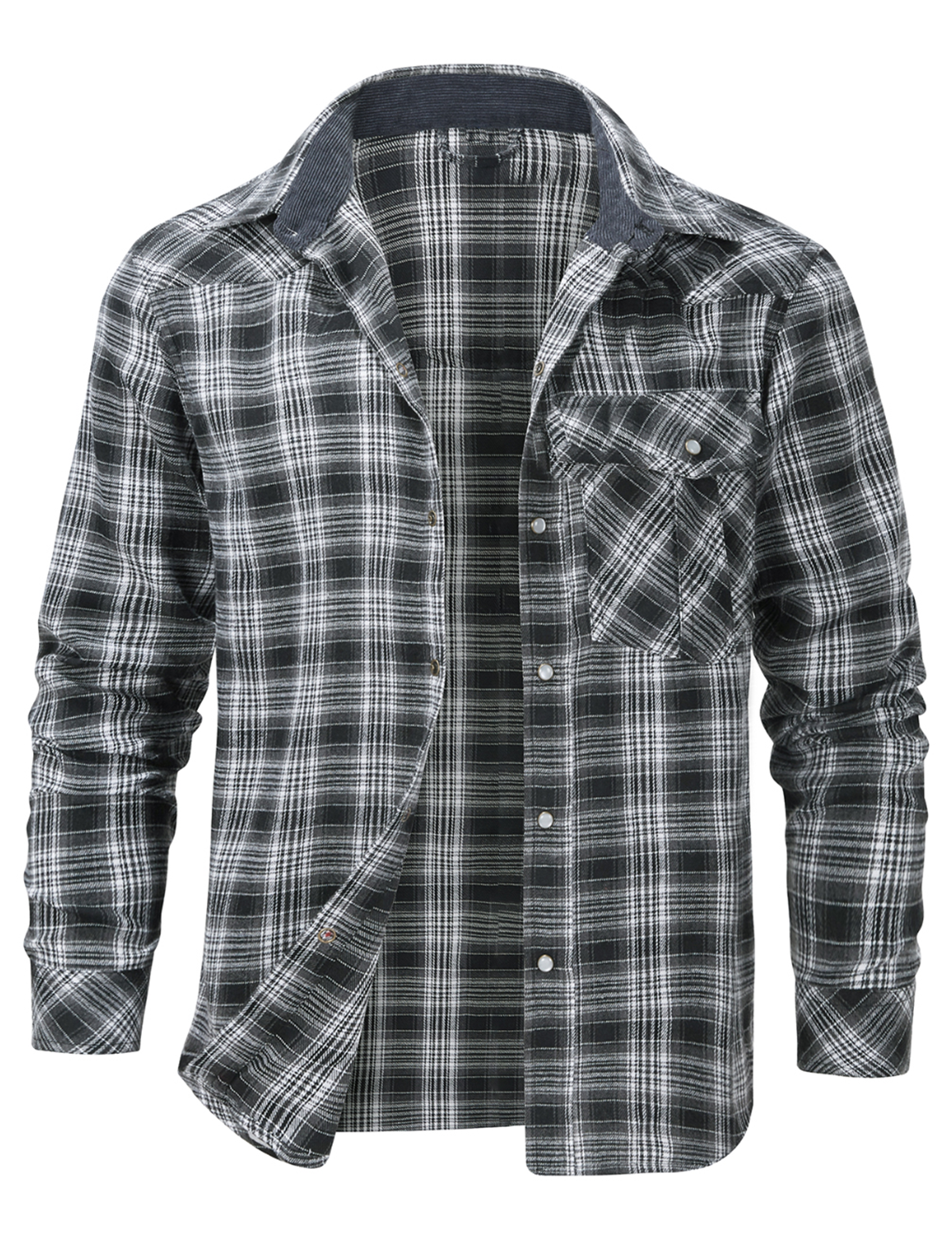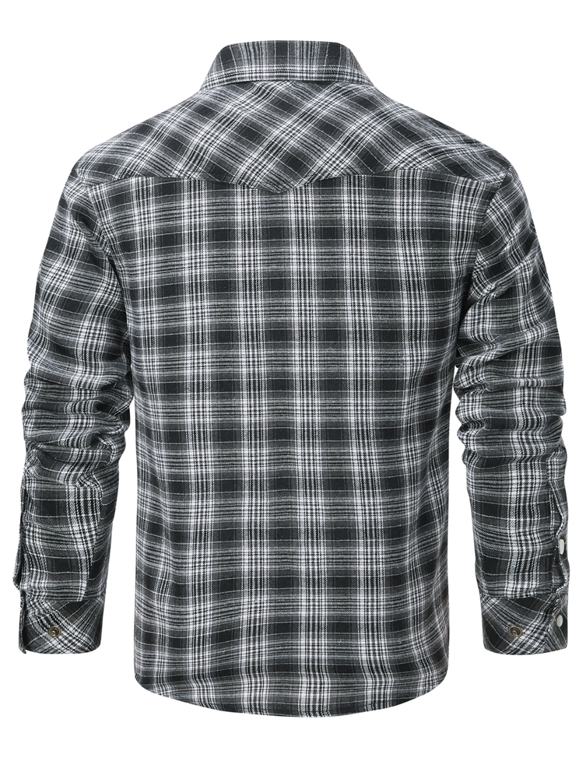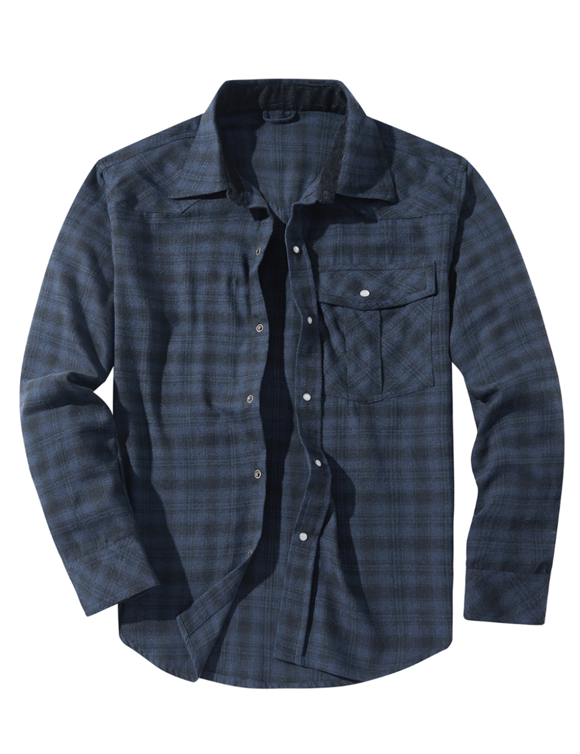 Men's Casual Plaid Pocket Button Up Long Sleeve Shirt