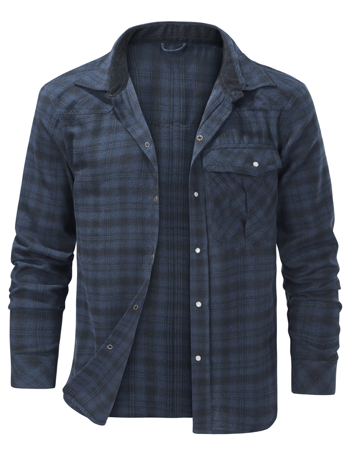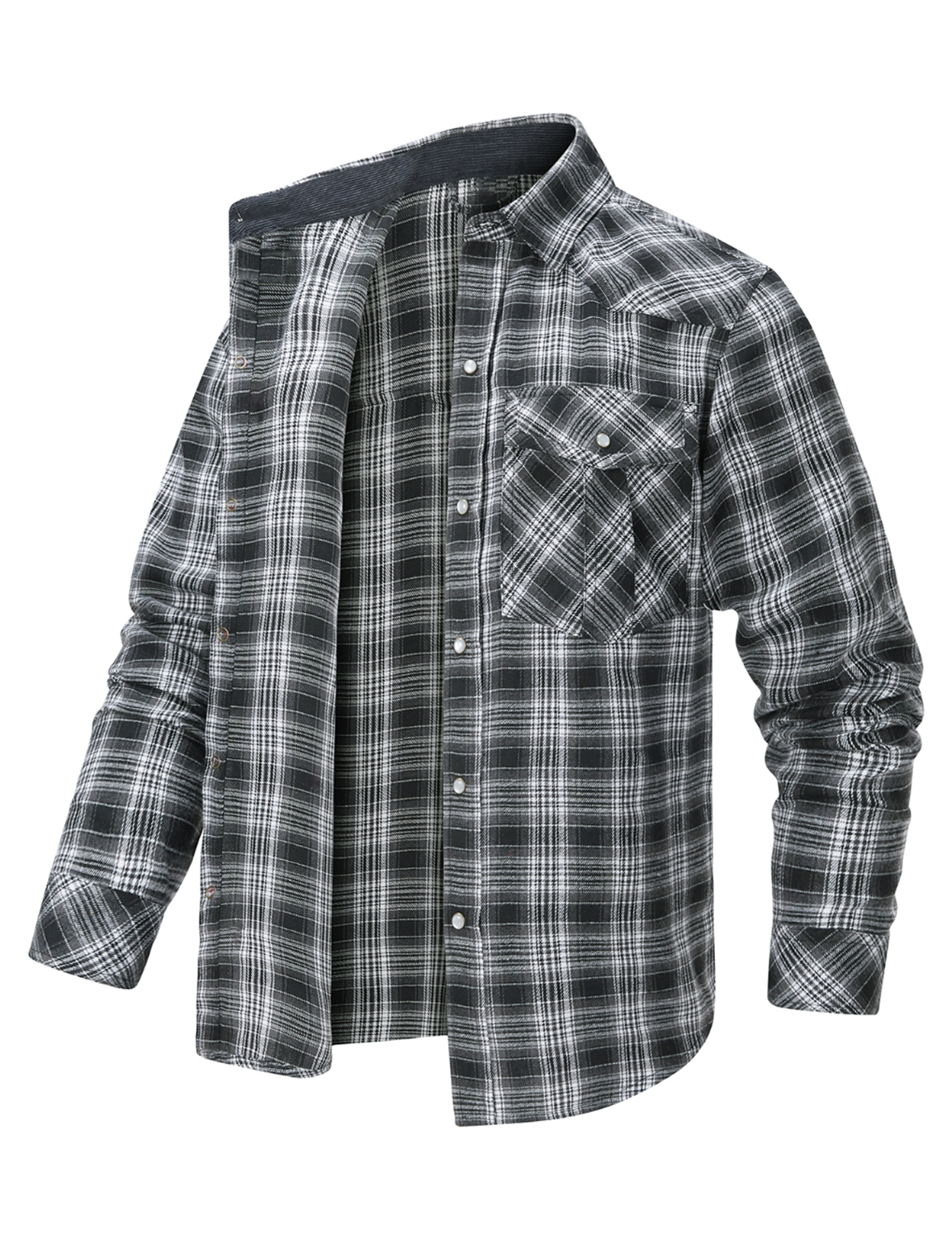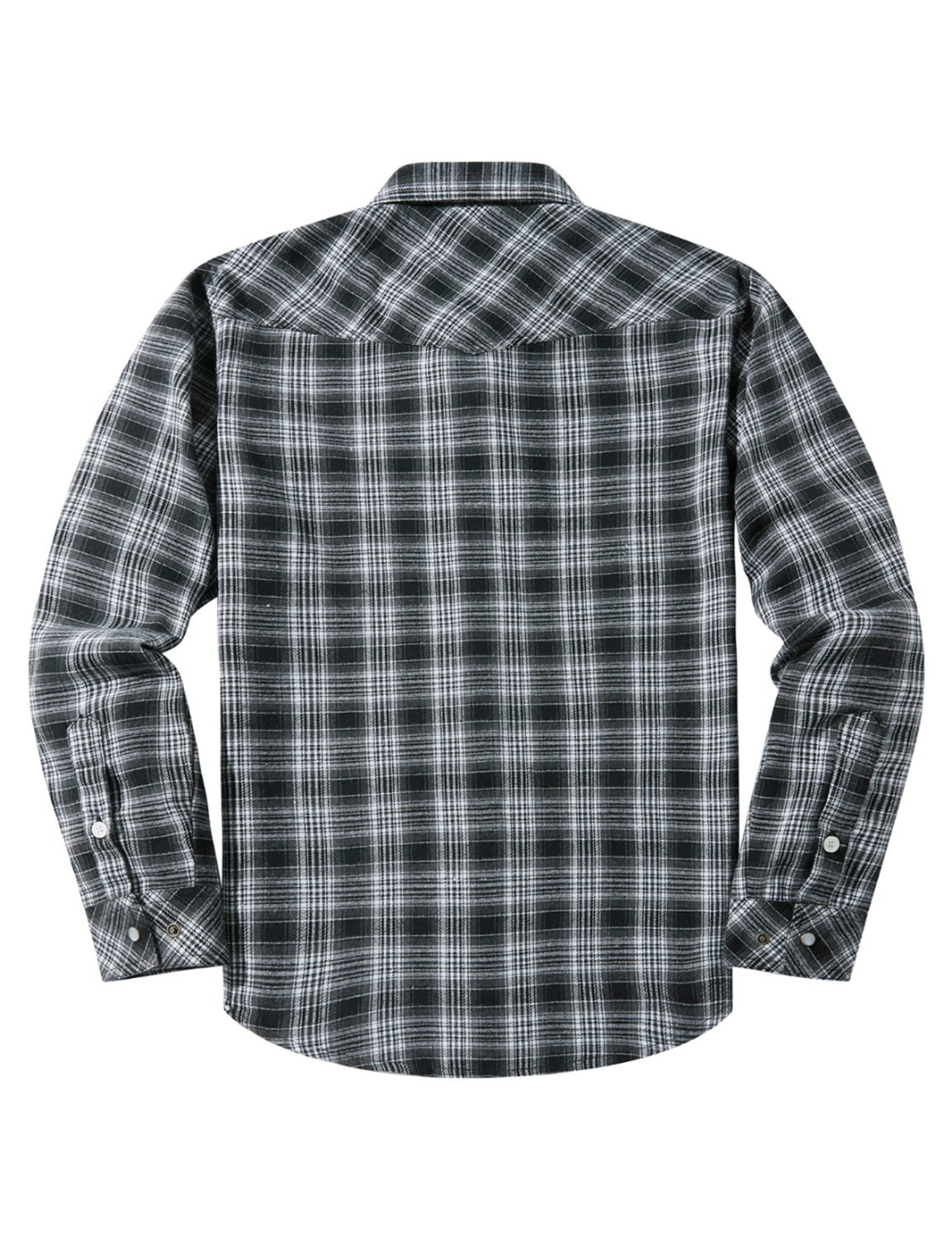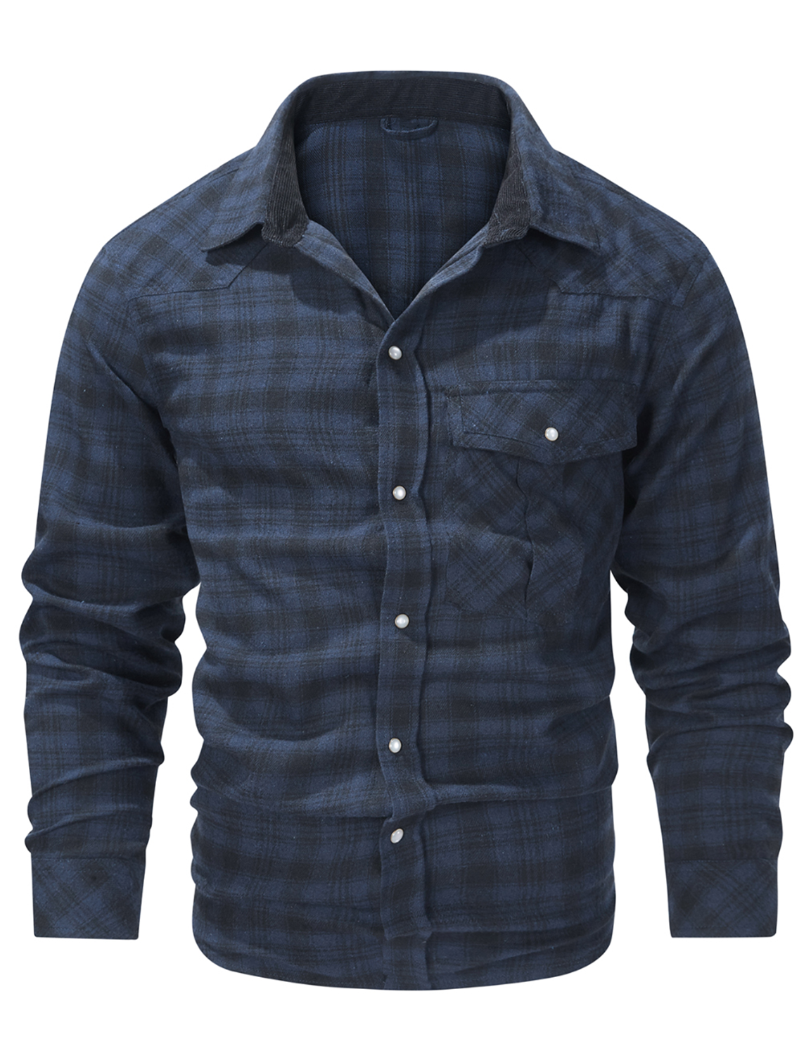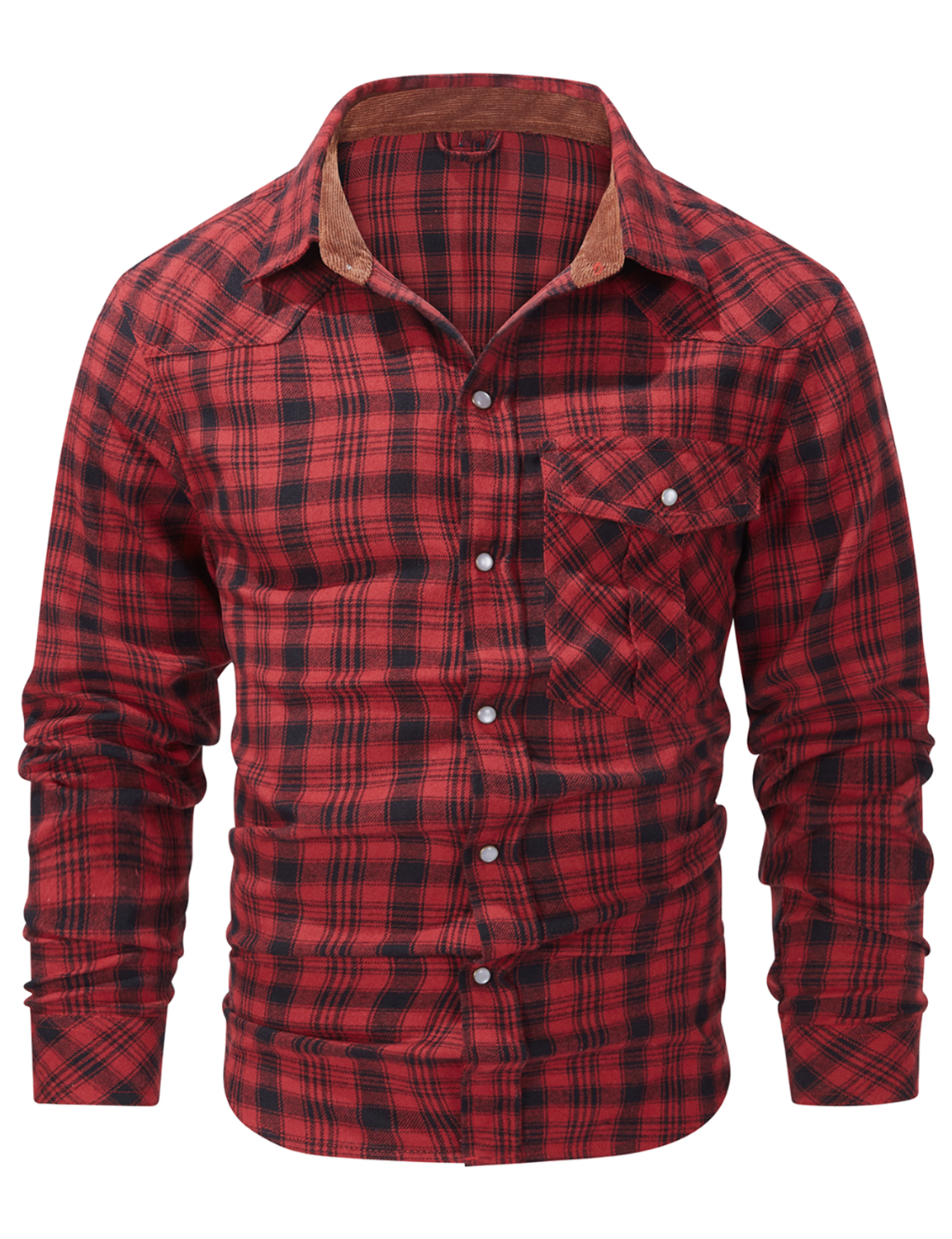 Men's Casual Plaid Pocket Button Up Long Sleeve Shirt