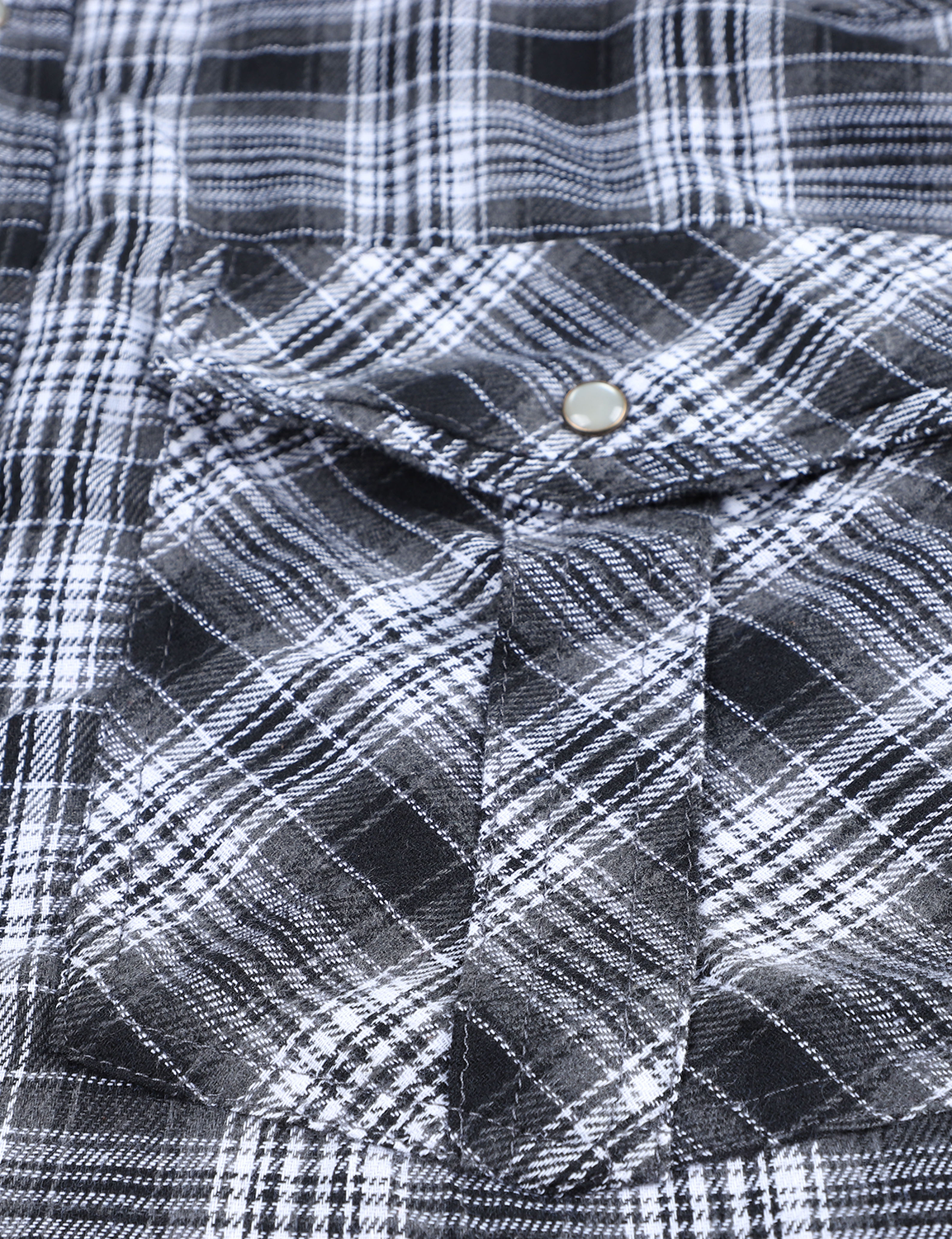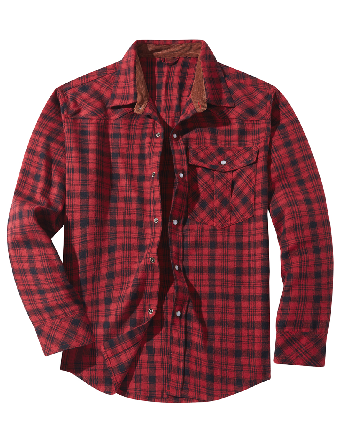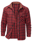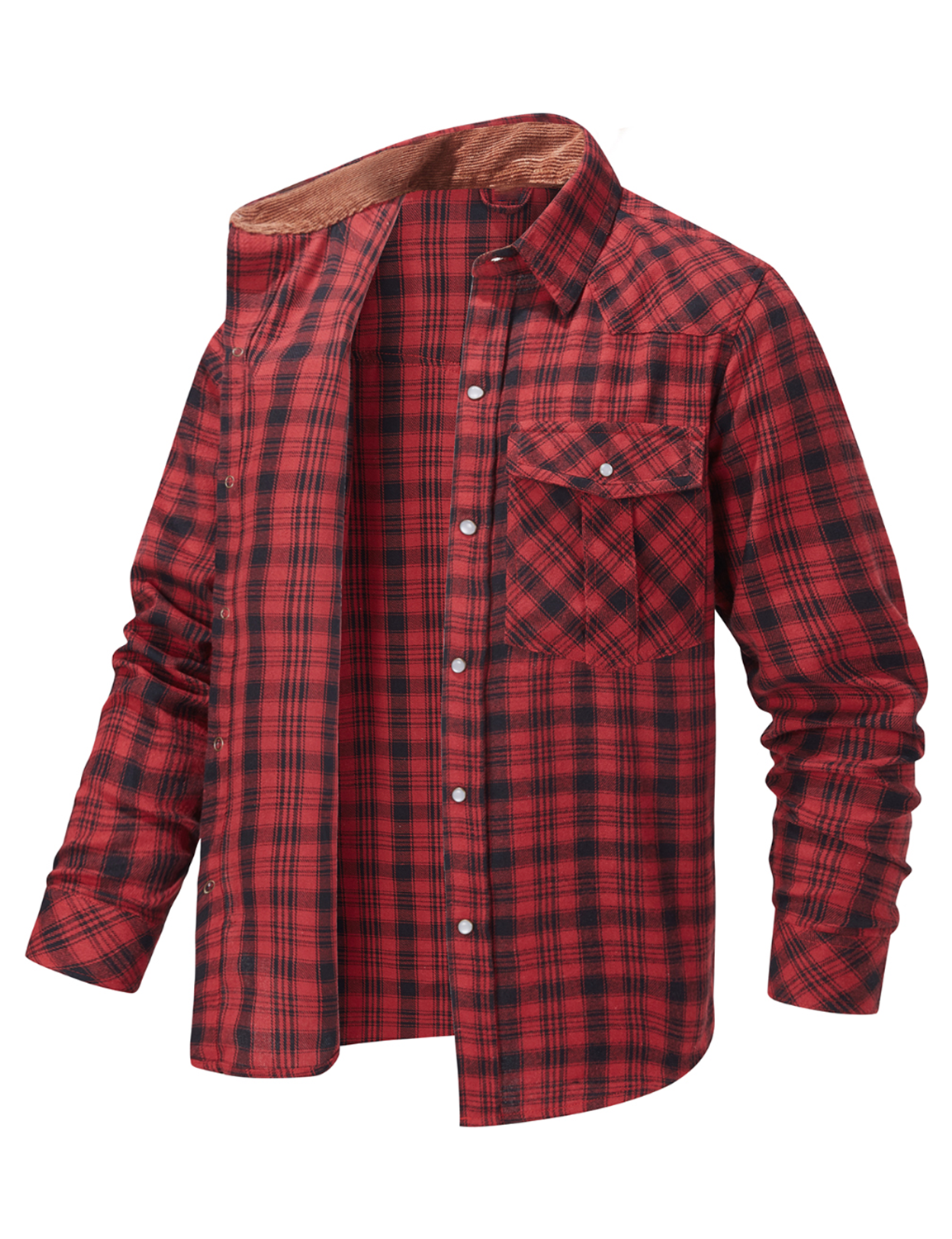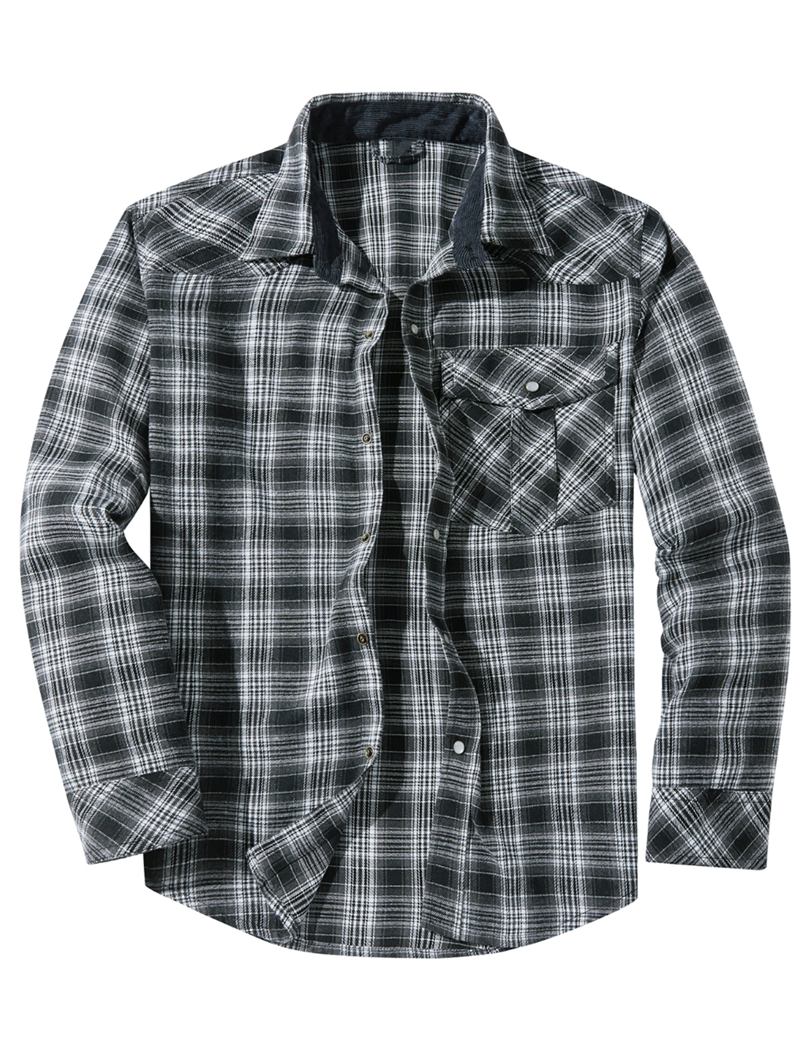 Men's Casual Plaid Pocket Button Up Long Sleeve Shirt