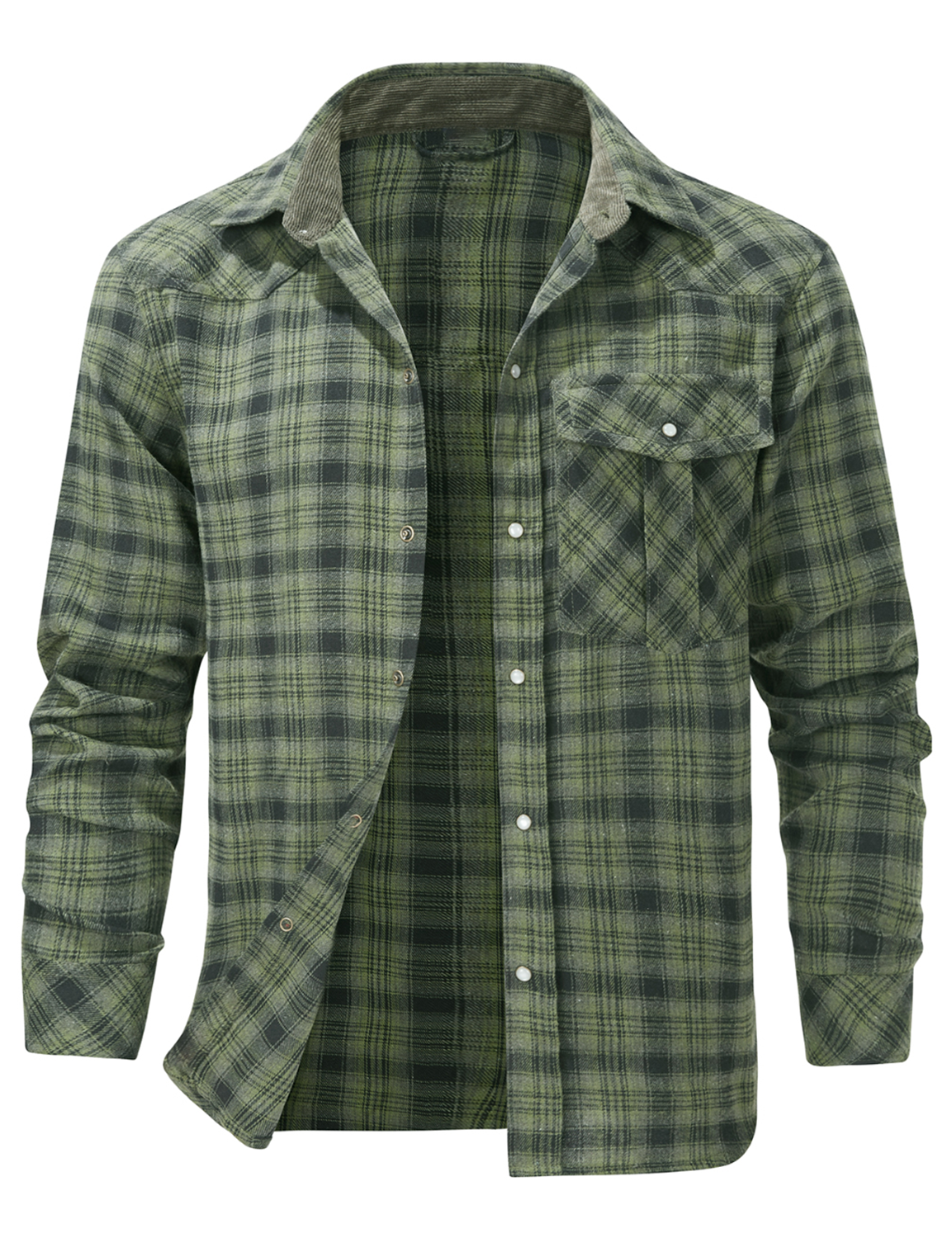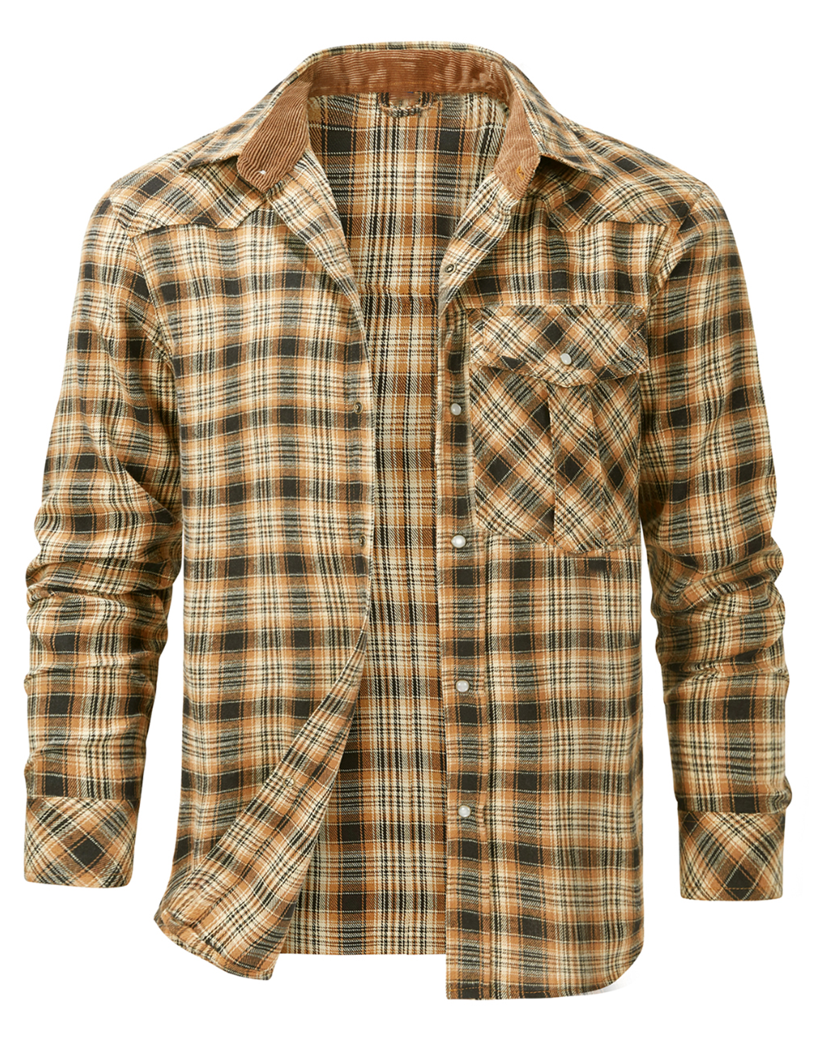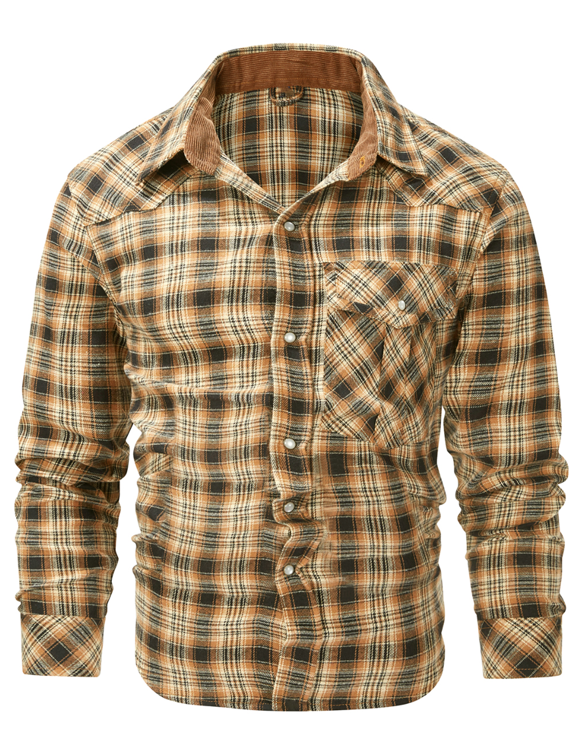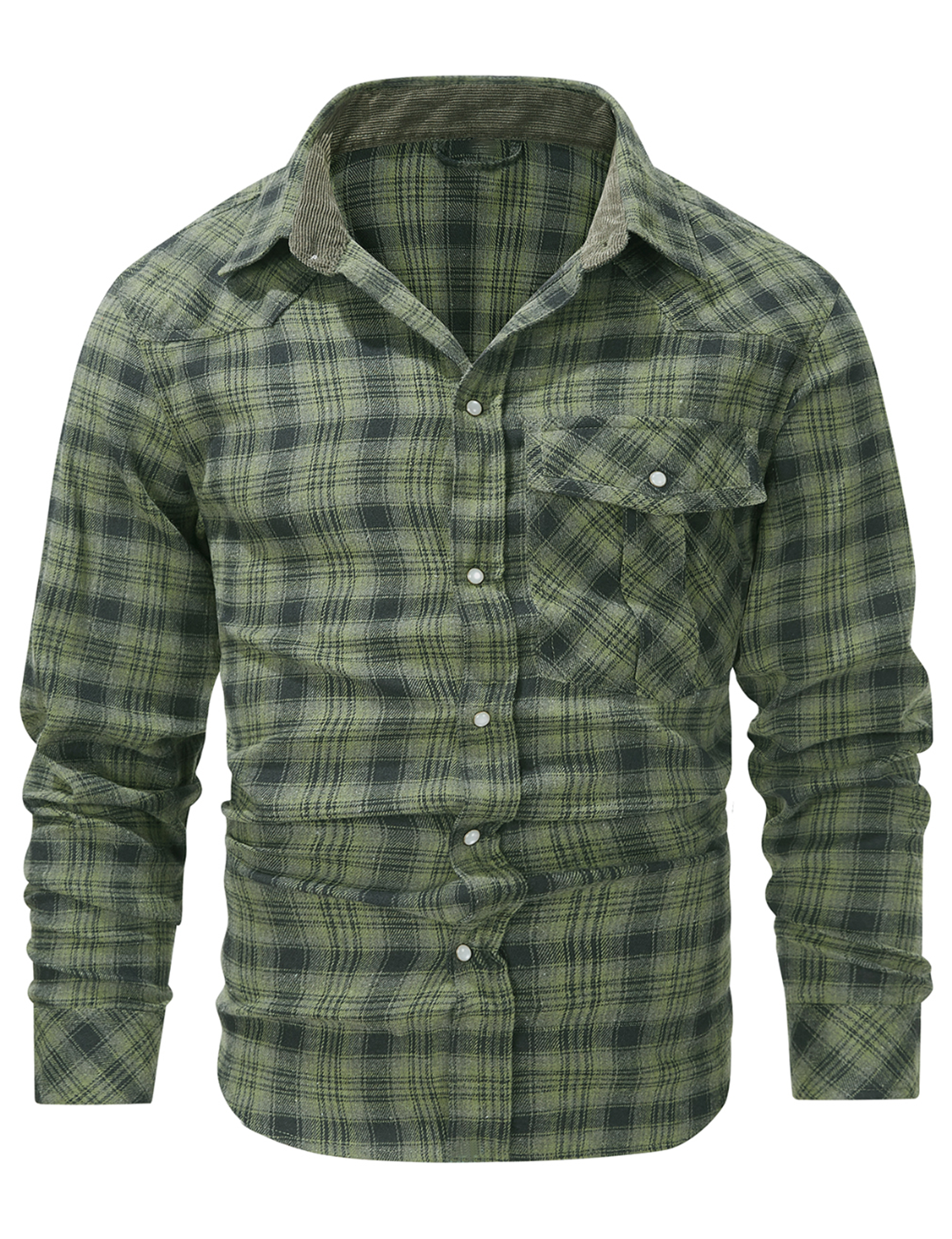 Men's Plaid Casual Pocket Button Up Long Sleeve Shirt