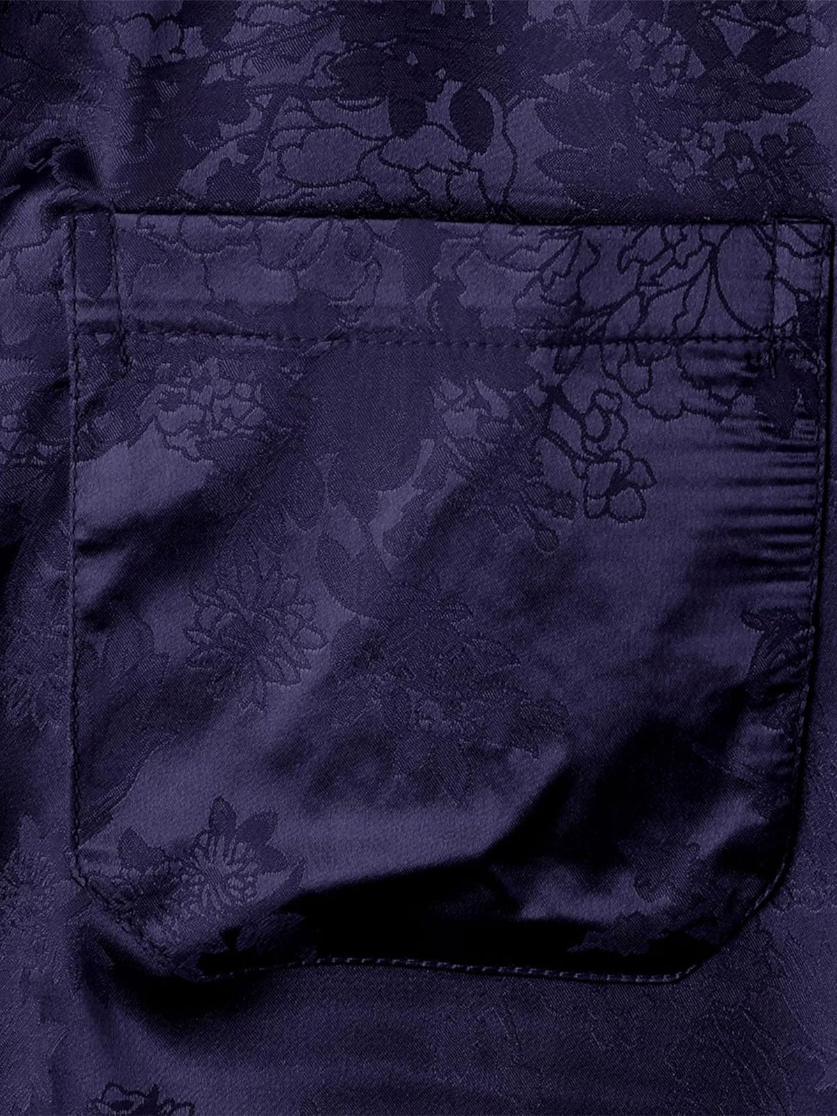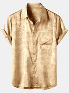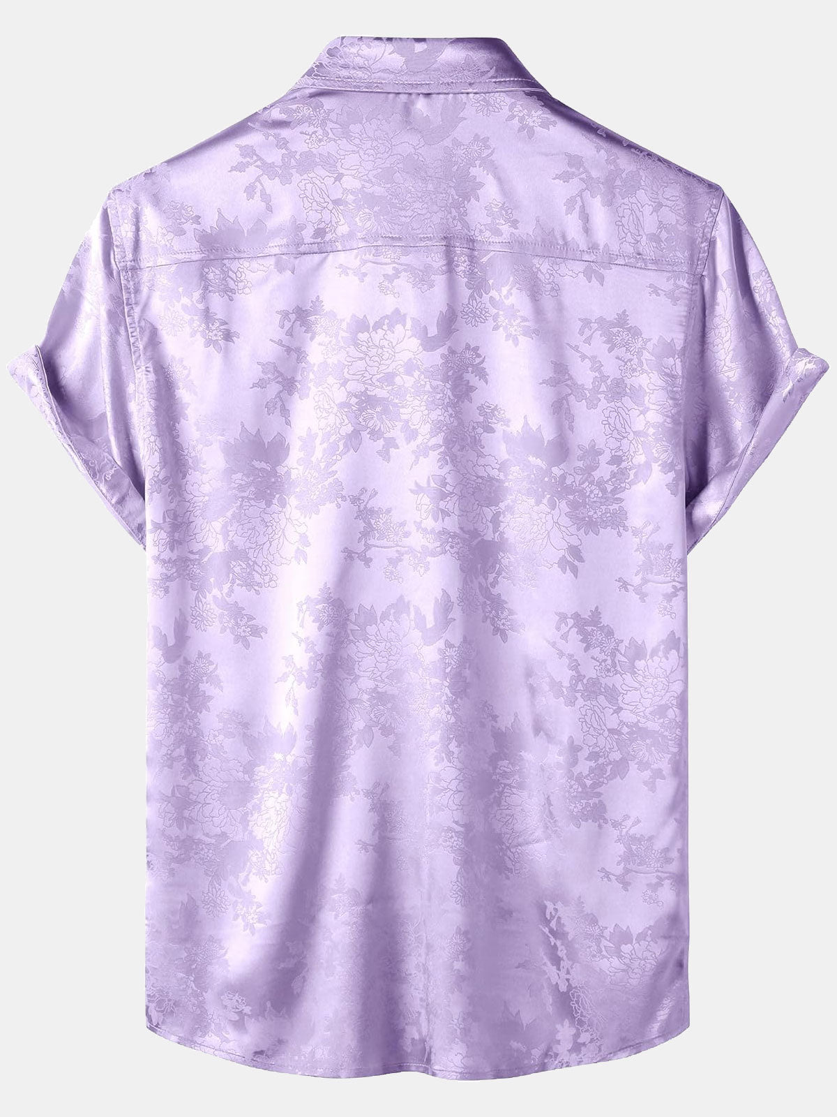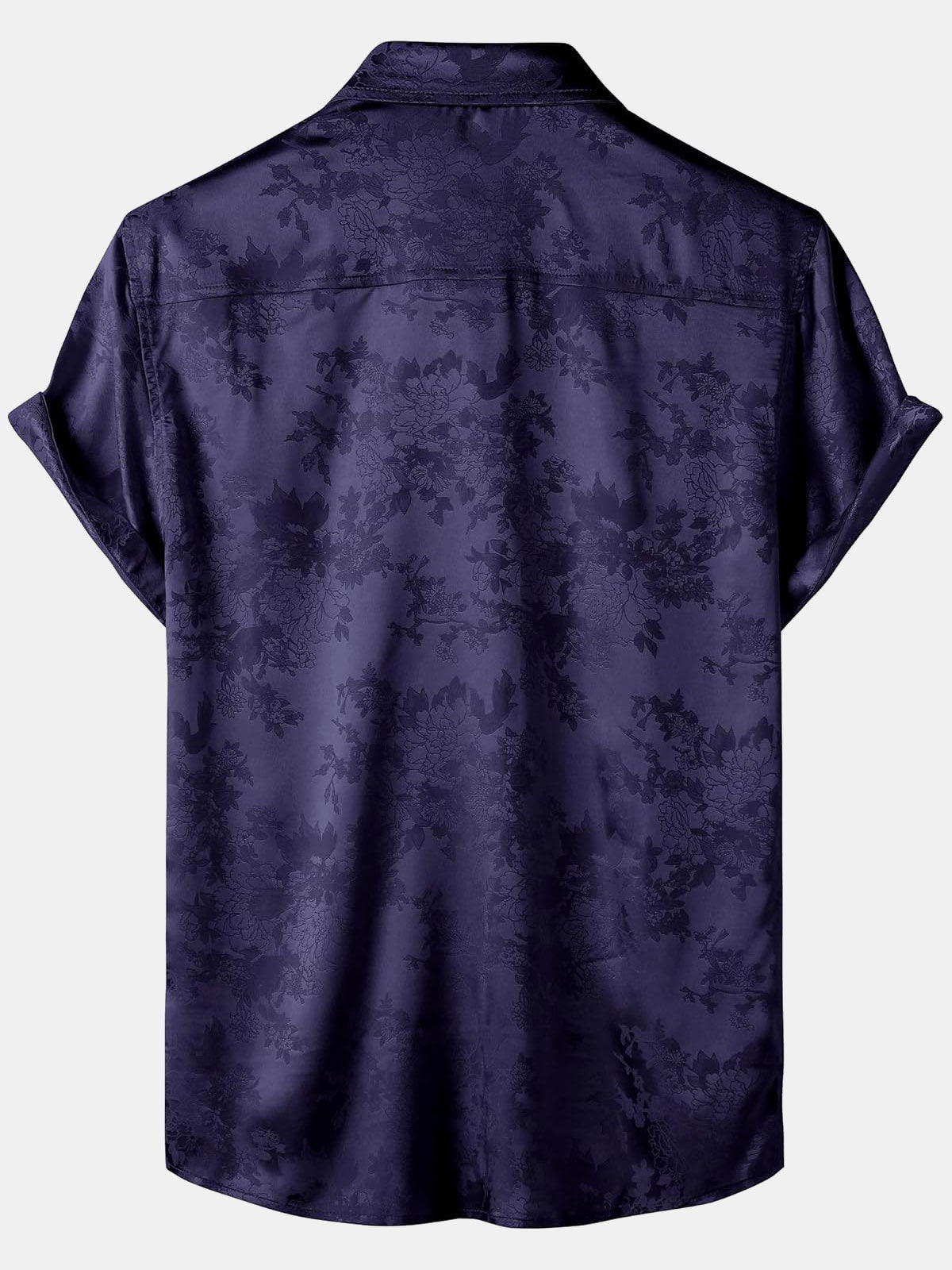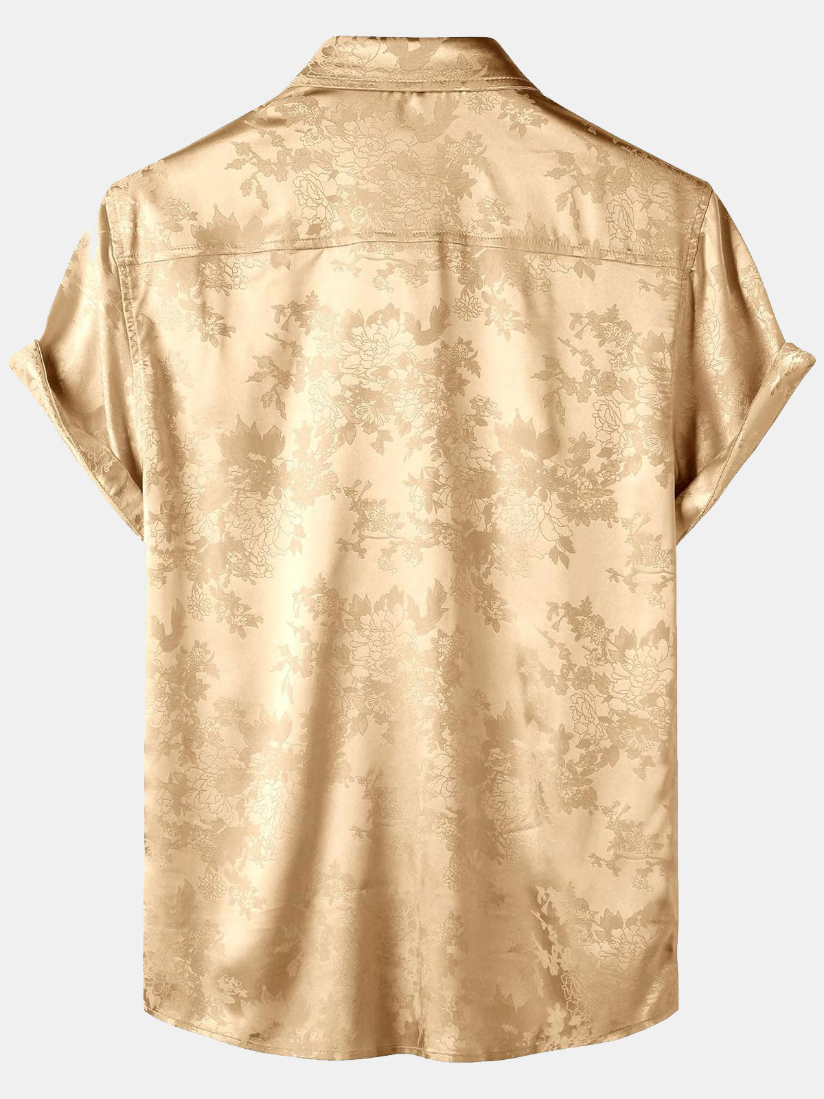 Camisa de manga corta de satén de seda con bolsillo y jacquard floral para hombre