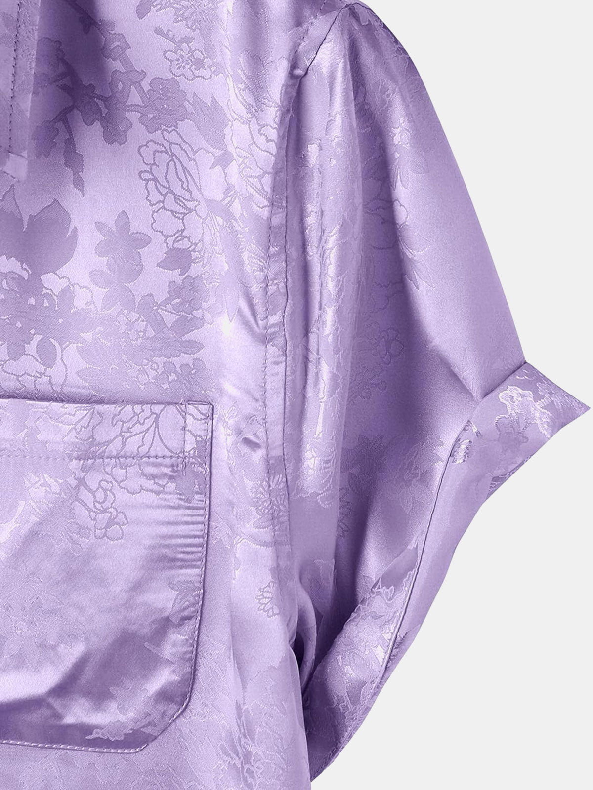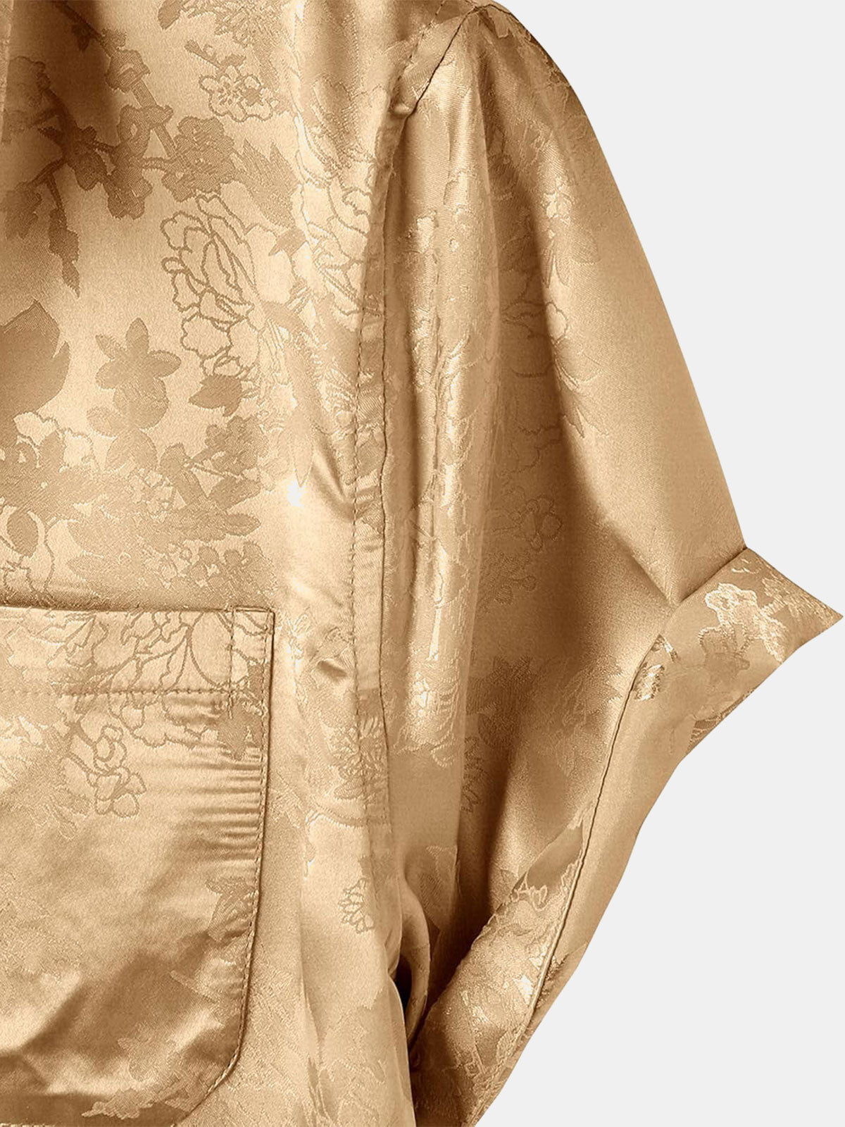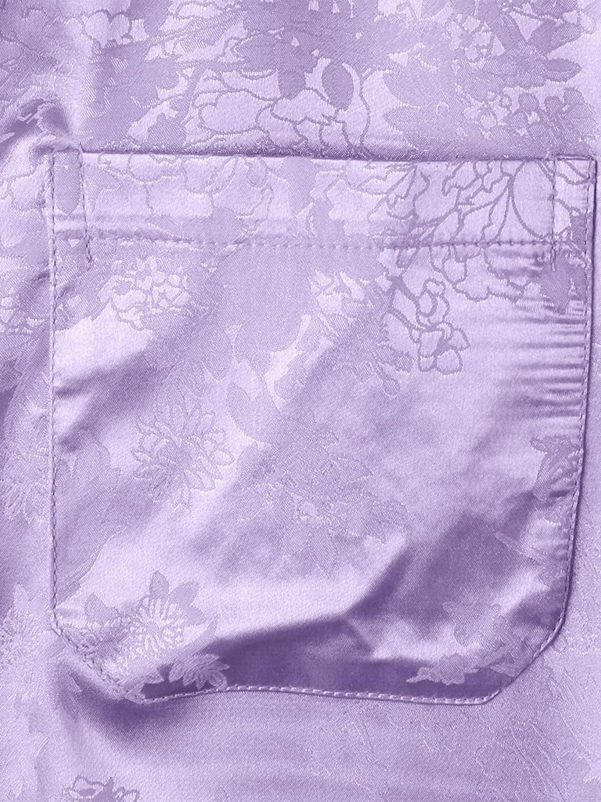 Camisa de manga corta de satén de seda con bolsillo y jacquard floral para hombre