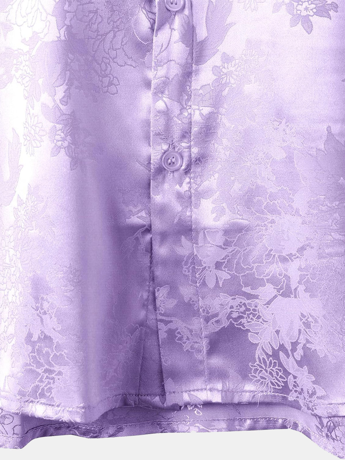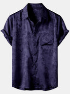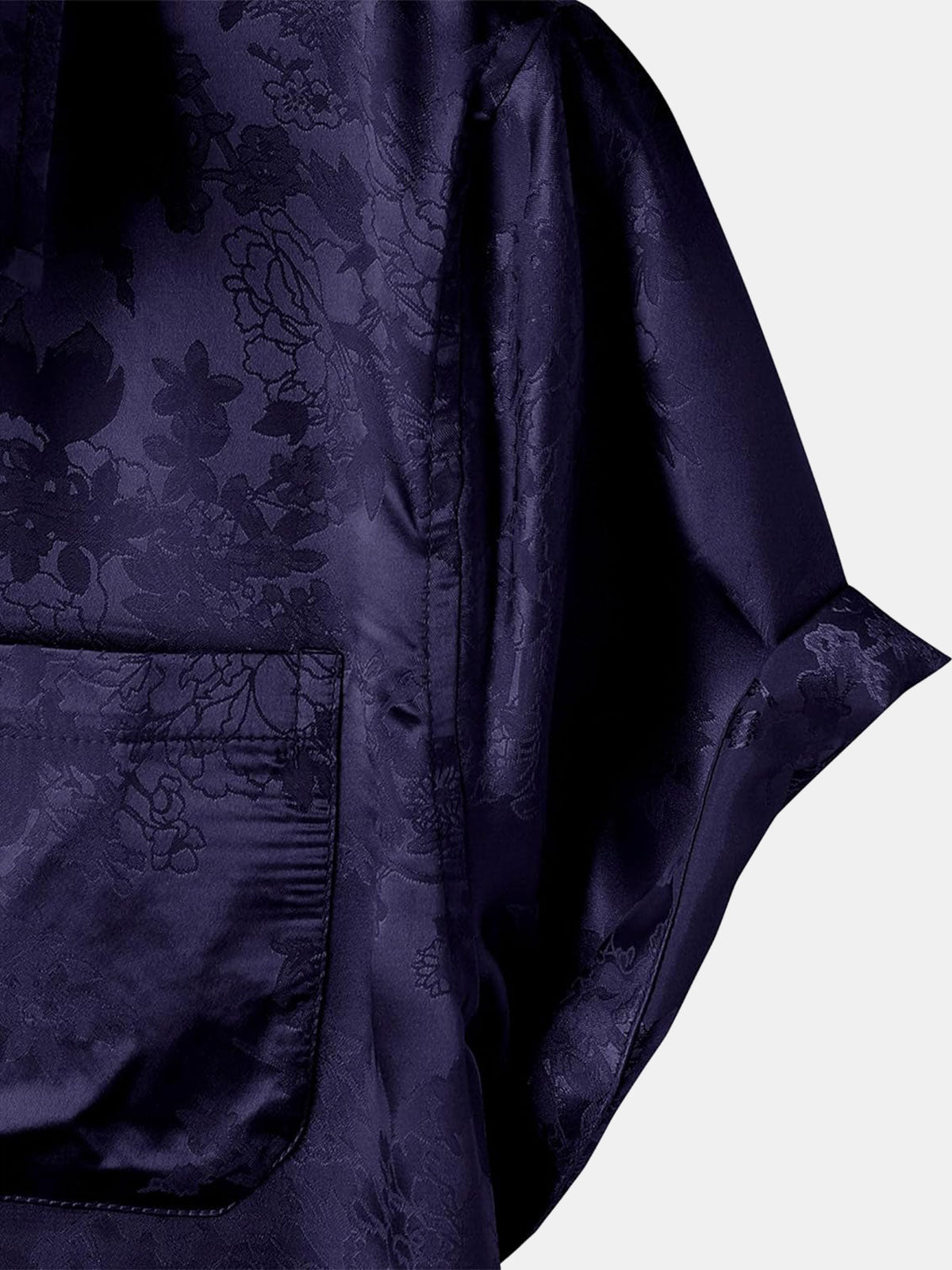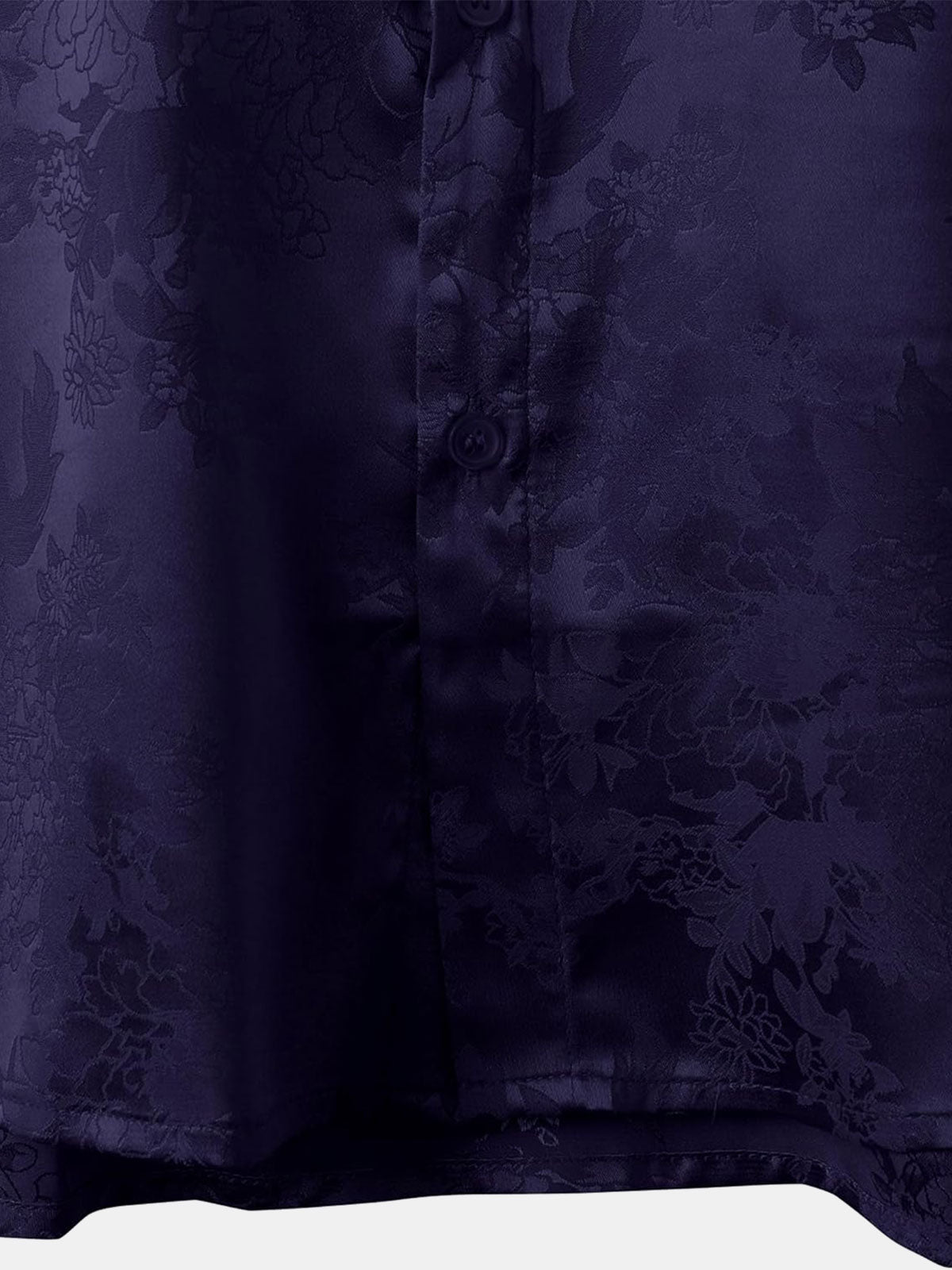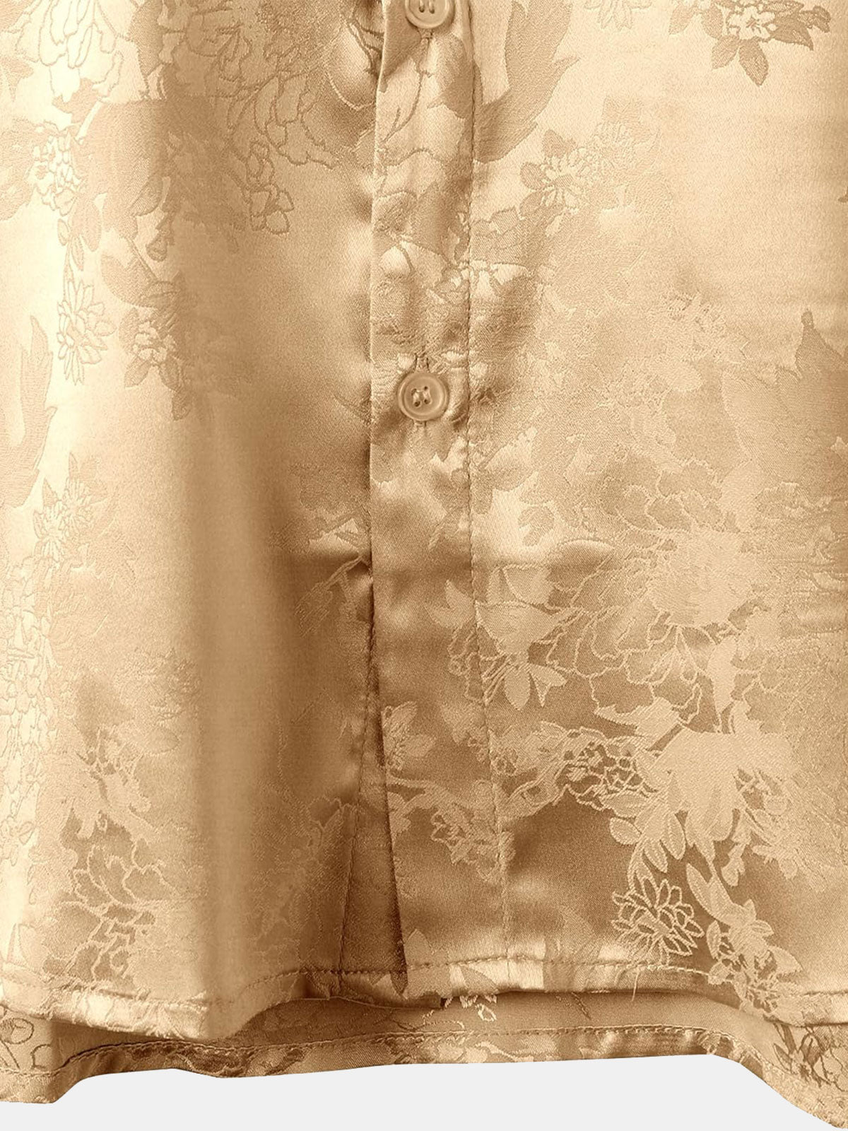 Camisa de manga corta de satén de seda con bolsillo y jacquard floral para hombre