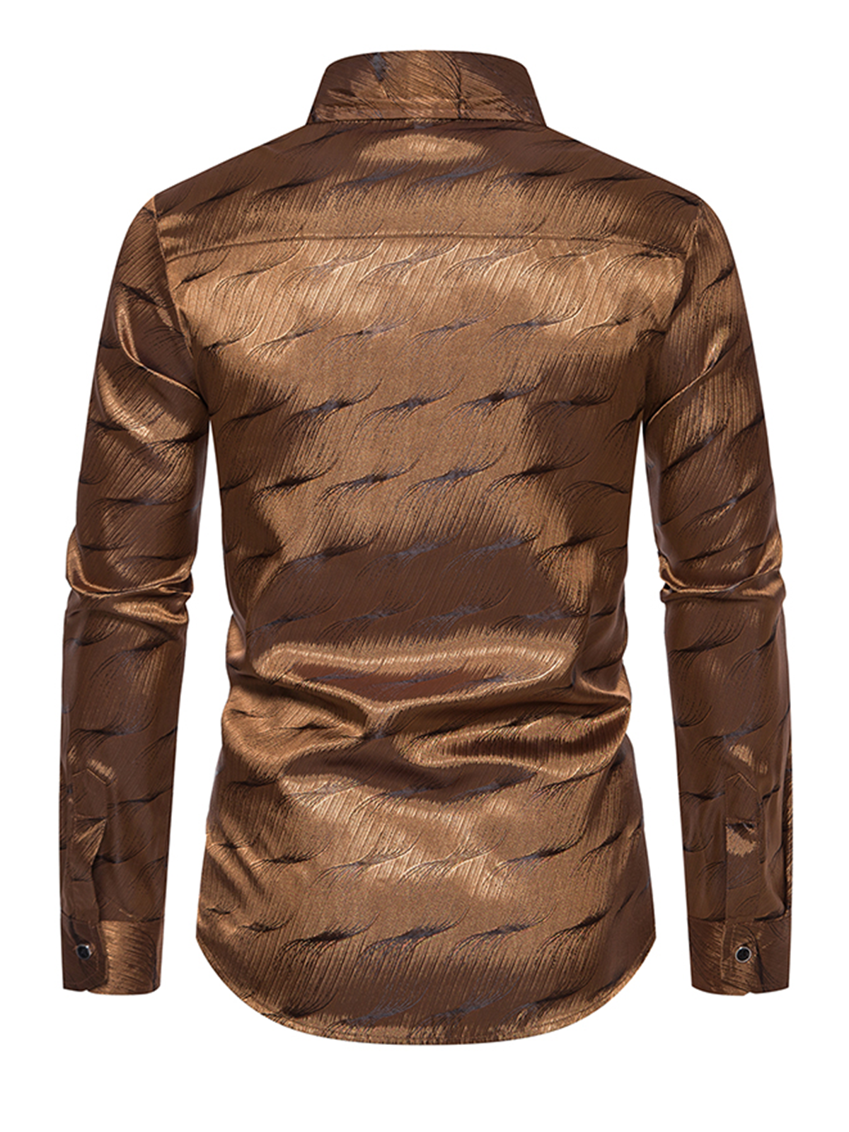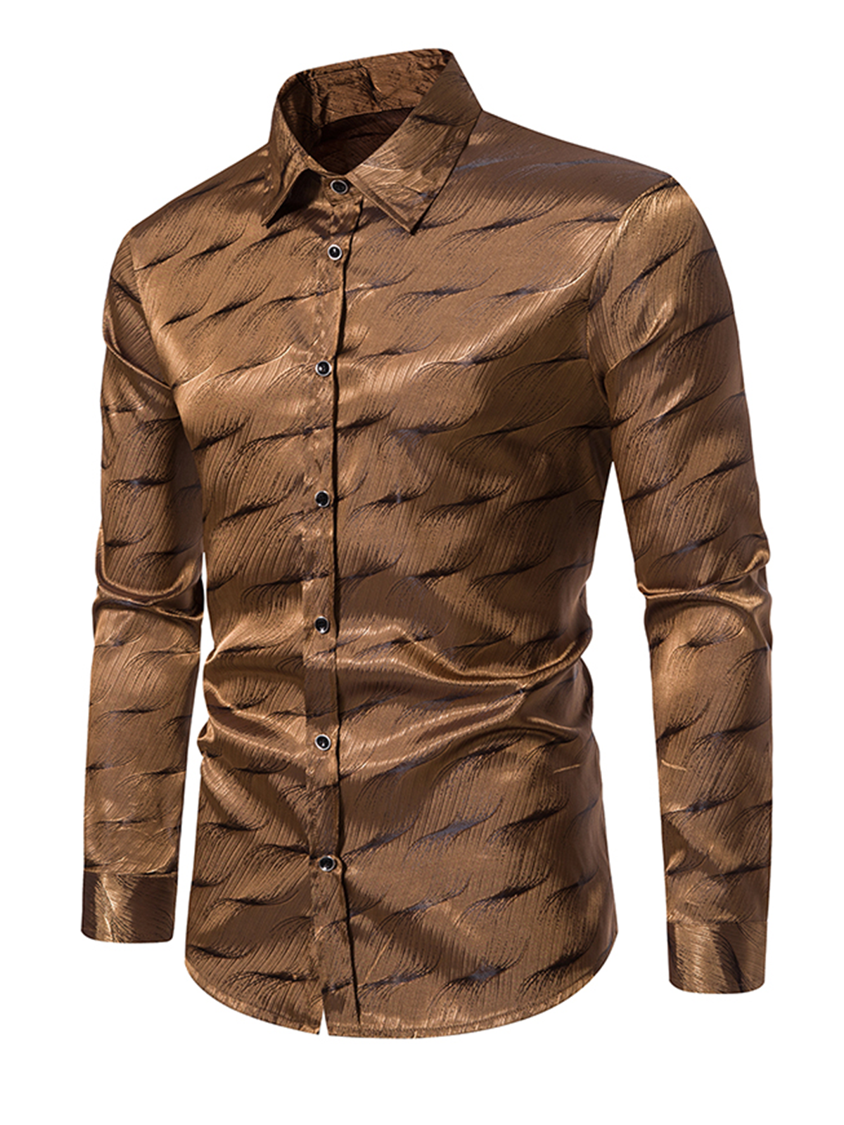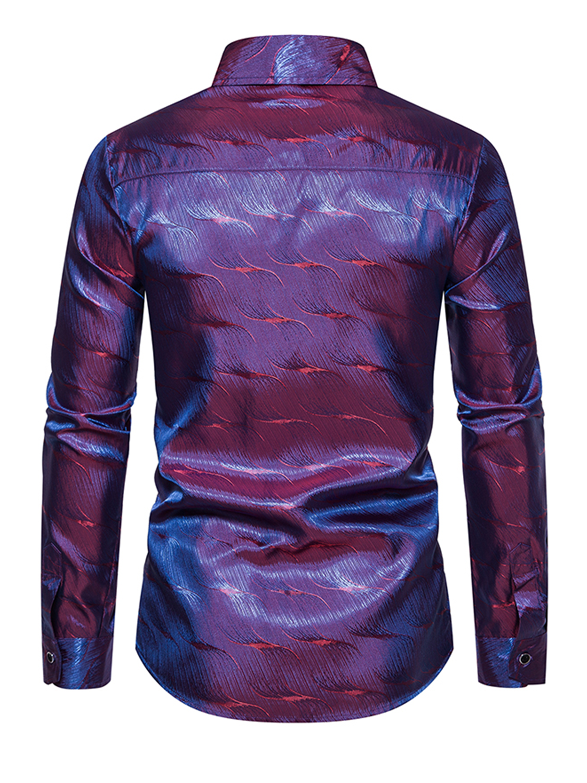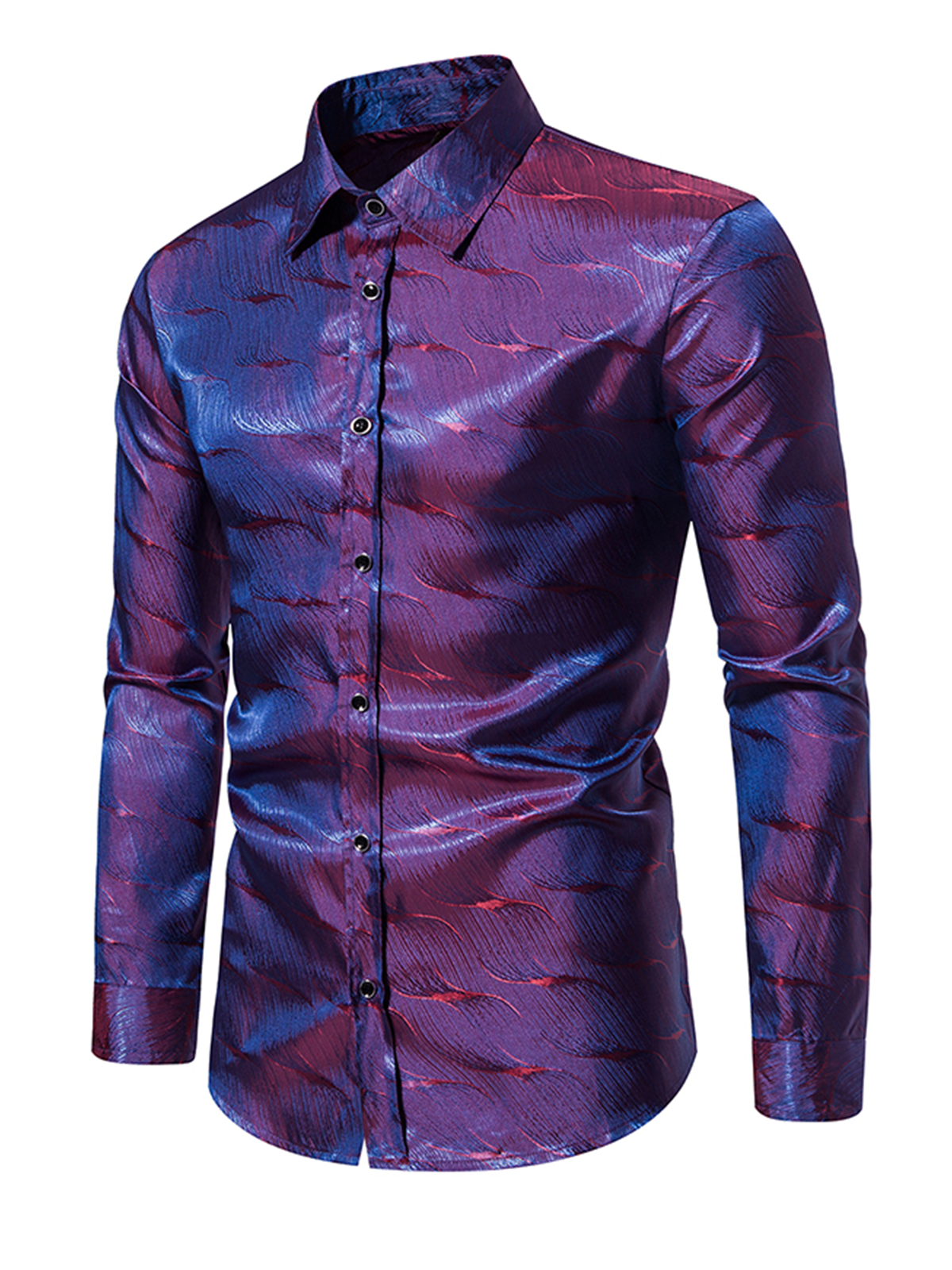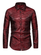 Men's Casual Party Button Up Jacquard Disco Long Sleeve Dress Shirt
