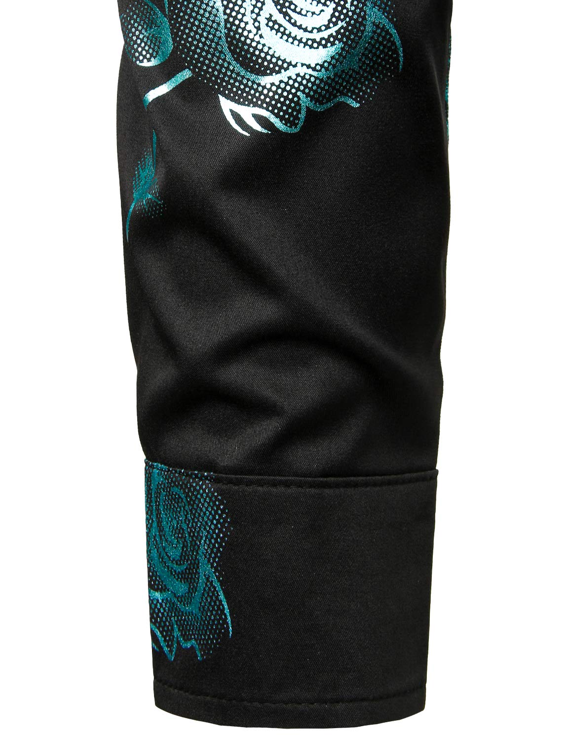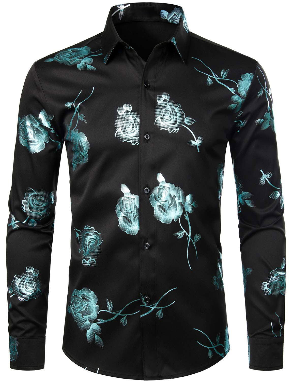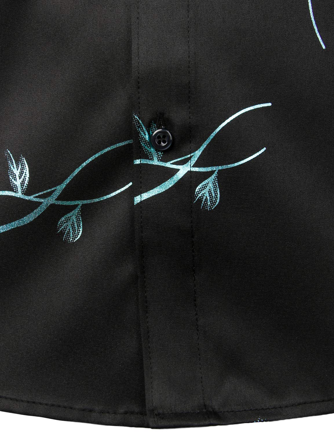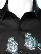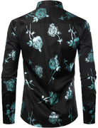 Men's Casual Rose Floral Print Button Up Long Sleeve Dress Shirt