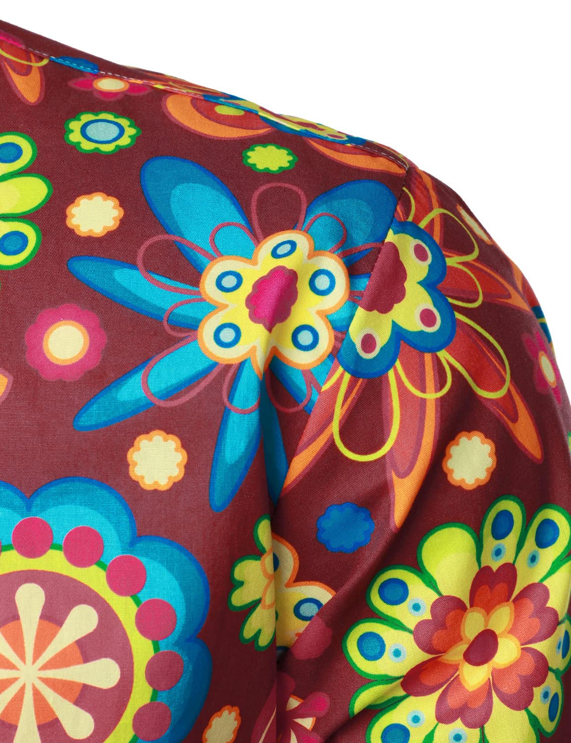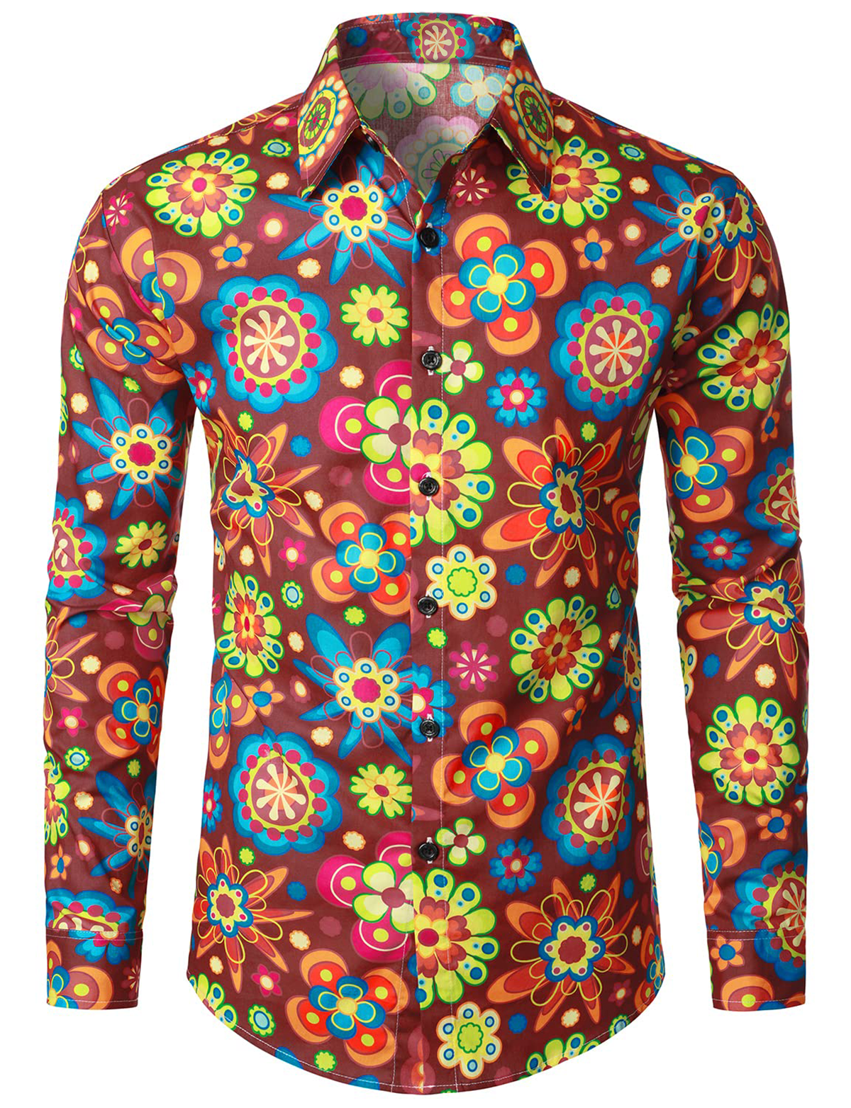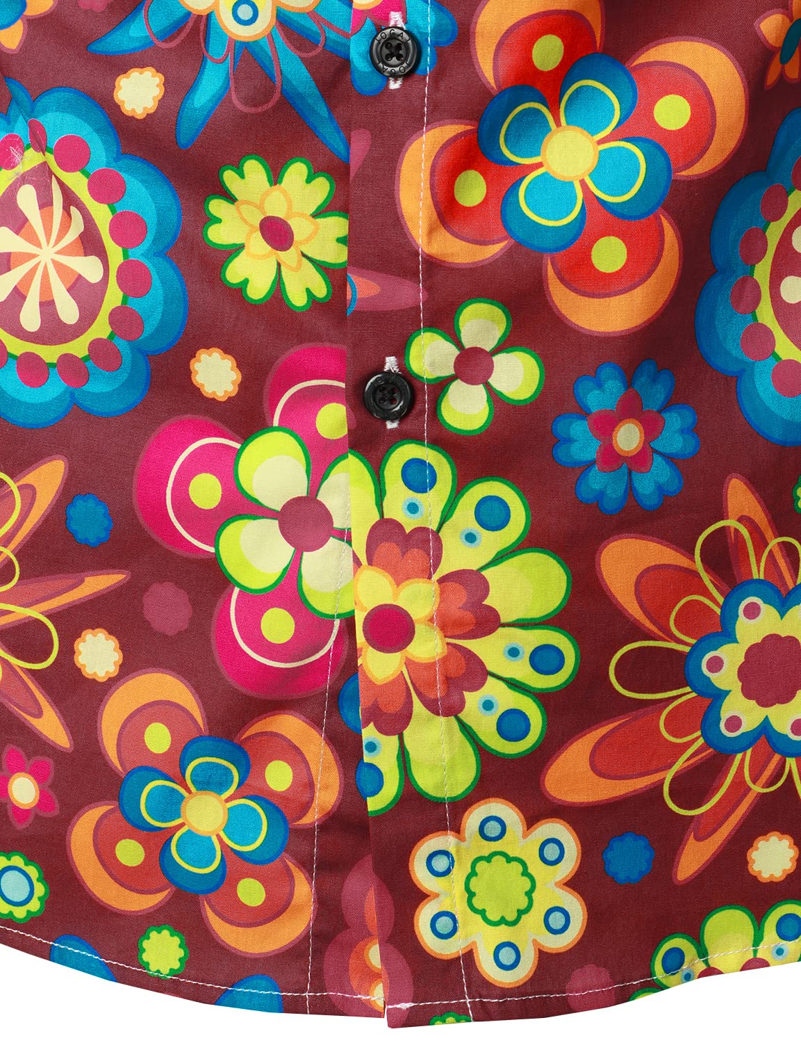Men's Floral Print Cotton Party Flower Disco Button Up Long Sleeve Shirt