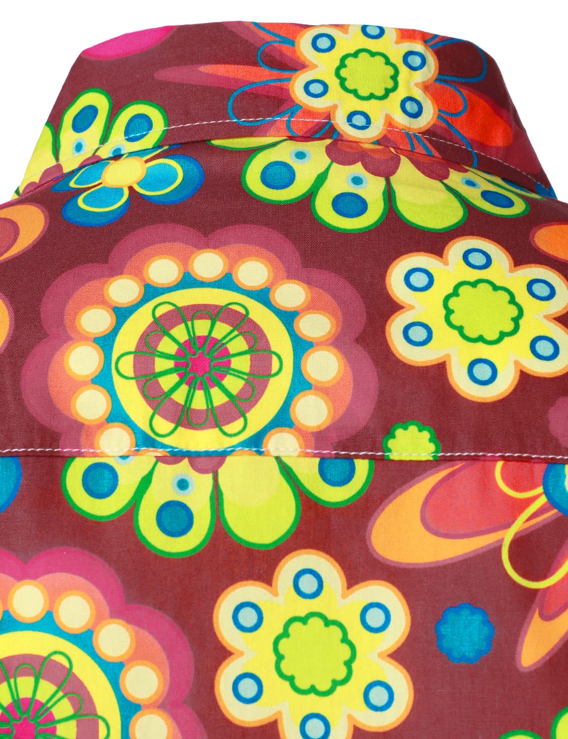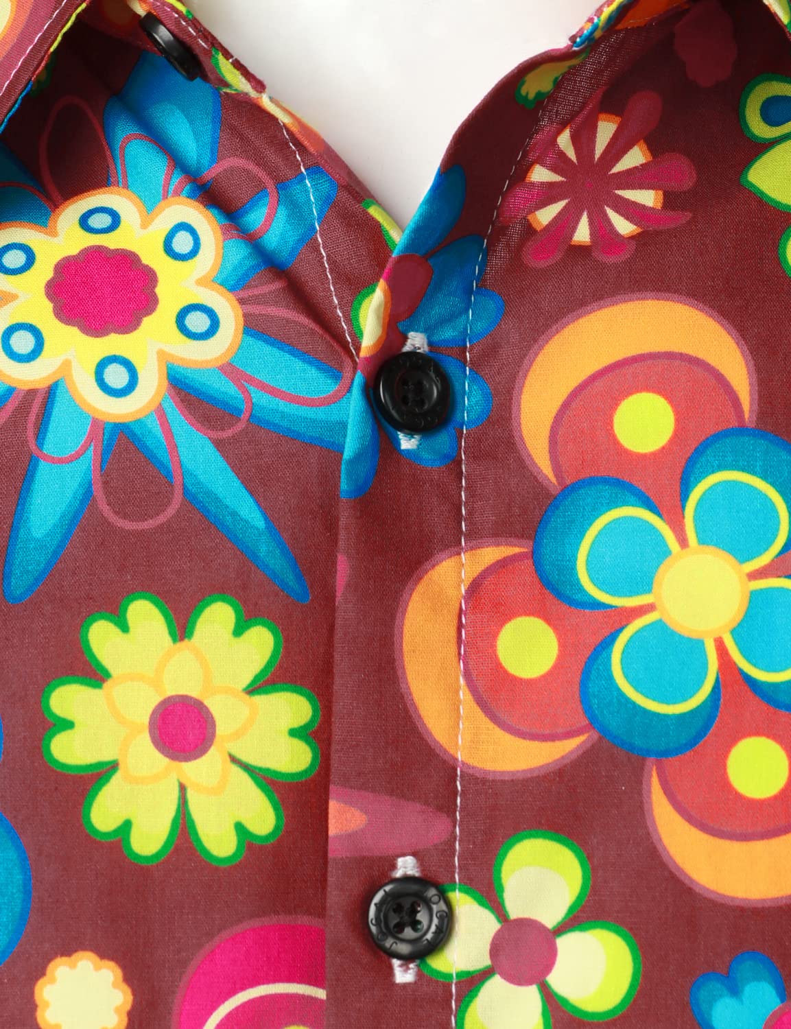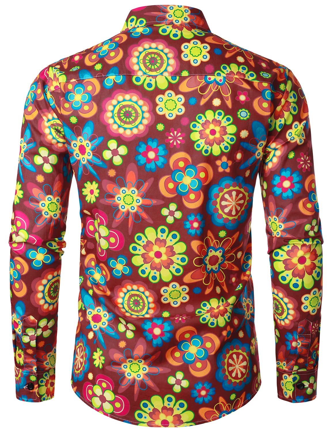 Men's Floral Print Cotton Party Flower Disco Button Up Long Sleeve Shirt