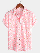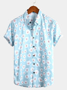 Camisa hawaiana de algodón de manga corta con estampado floral de margaritas para hombre