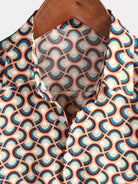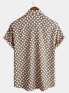 Camisa de verano estilo playa de manga corta con estampado geométrico circular retro vintage para hombre